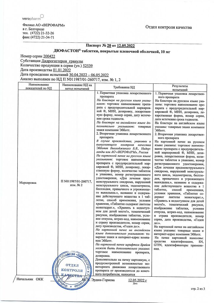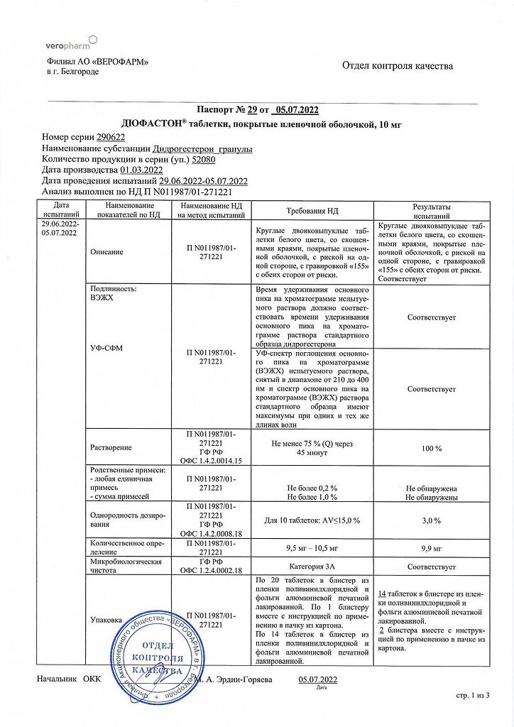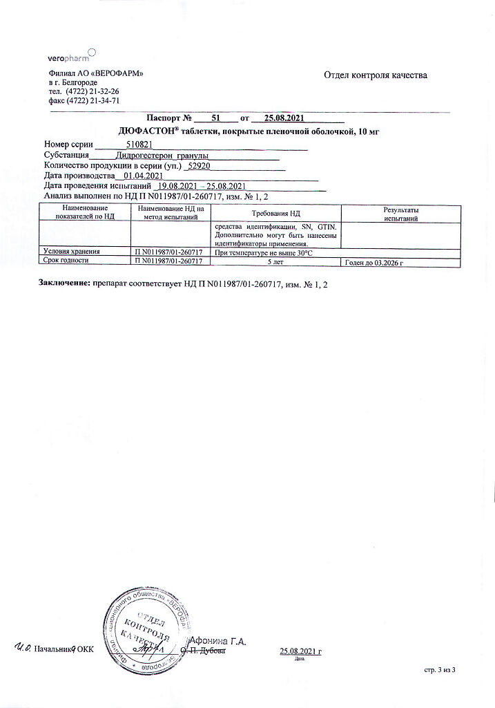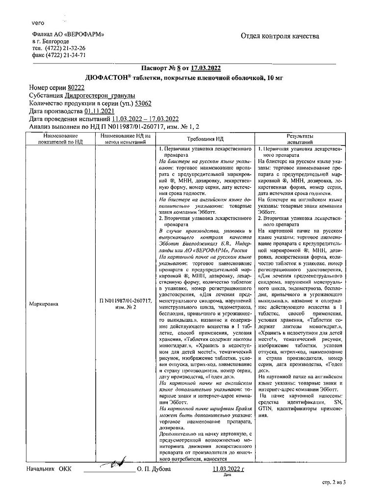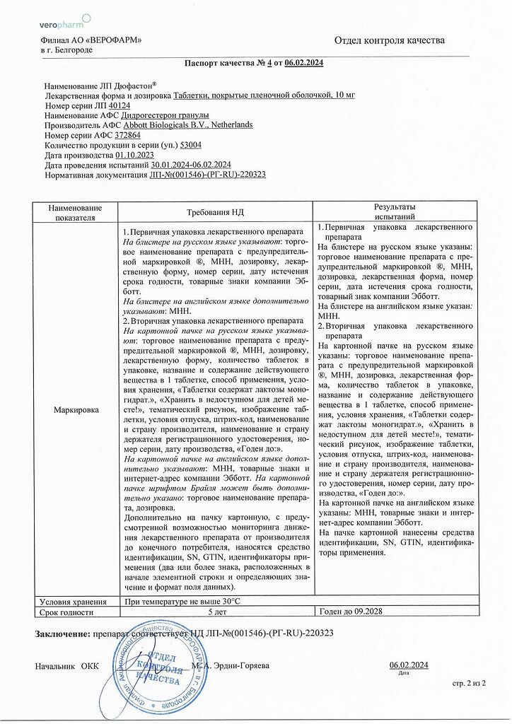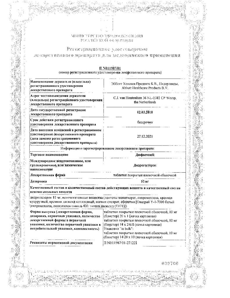 Документы Дюфастон таблетки покрыт.плен.об. 10 мг 28 шт