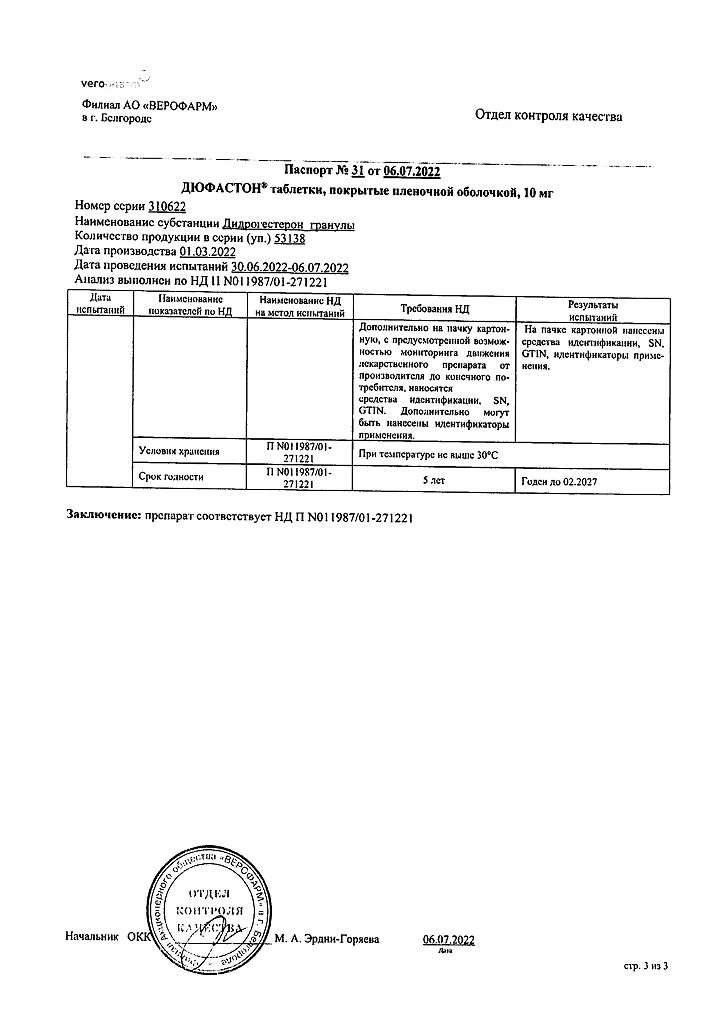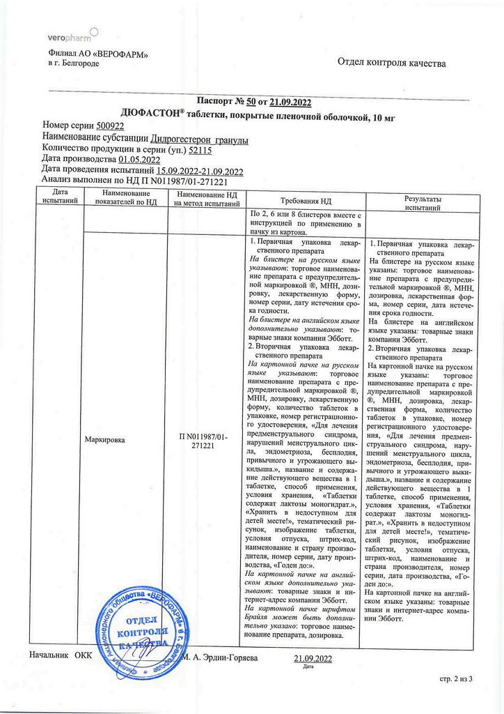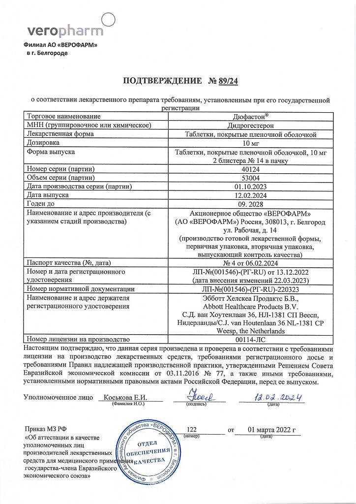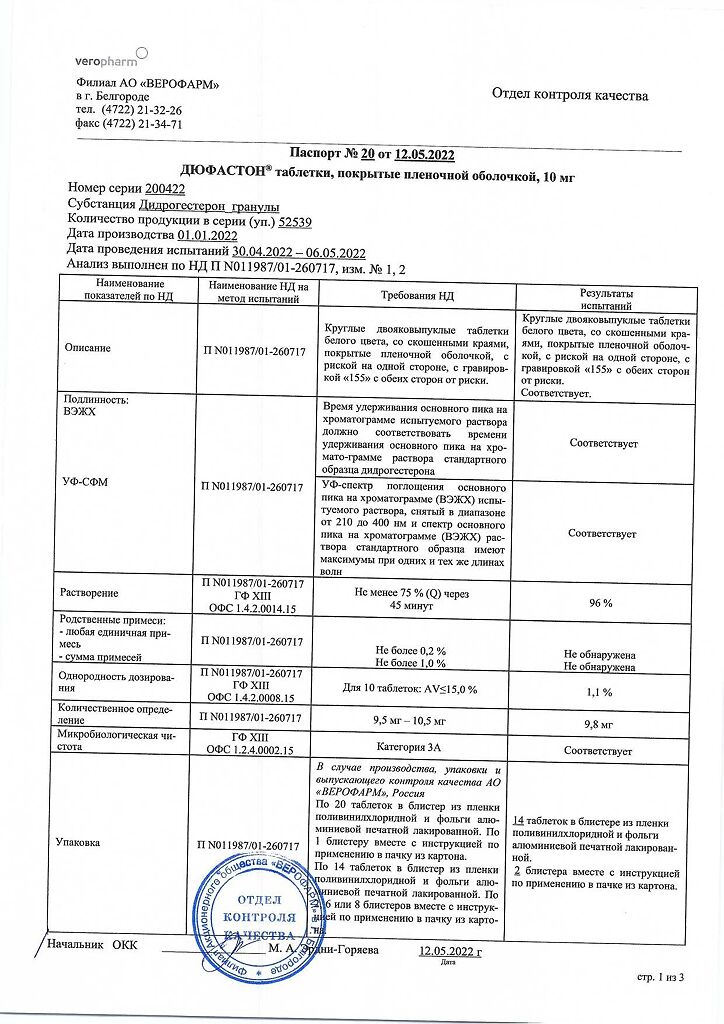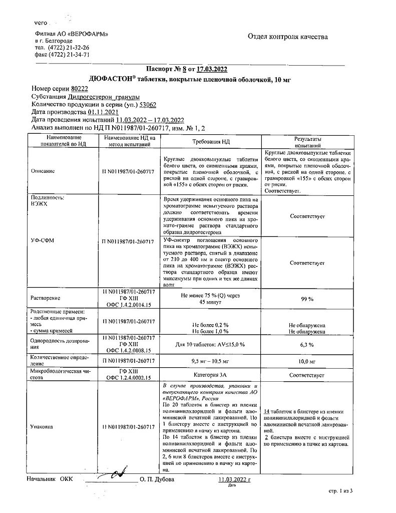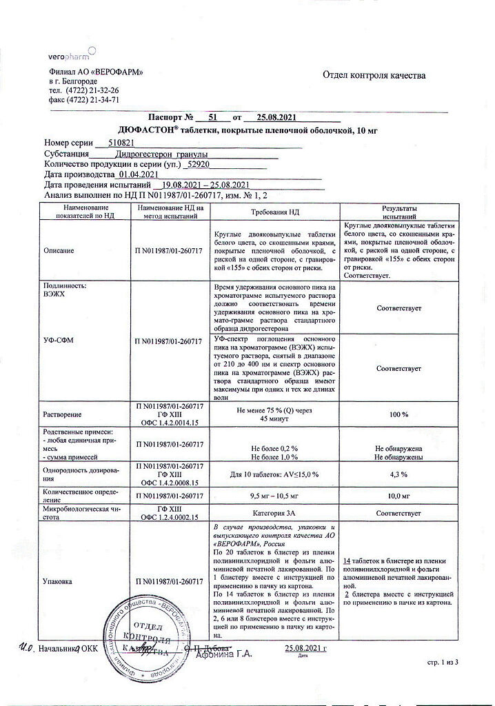 Документы Дюфастон таблетки покрыт.плен.об. 10 мг 28 шт