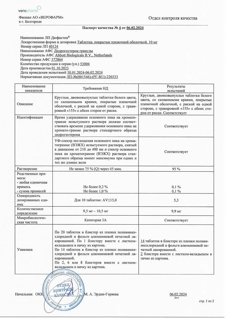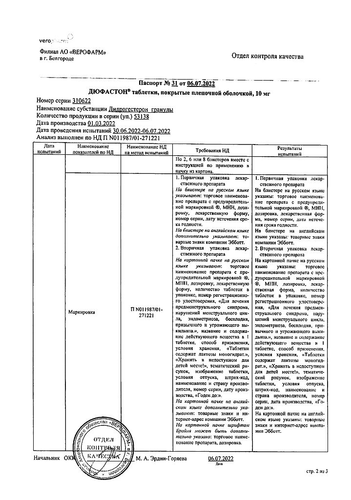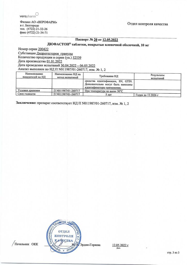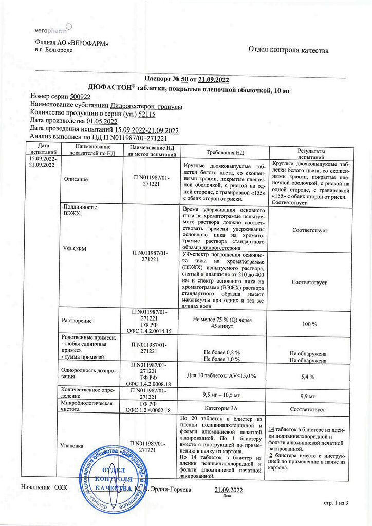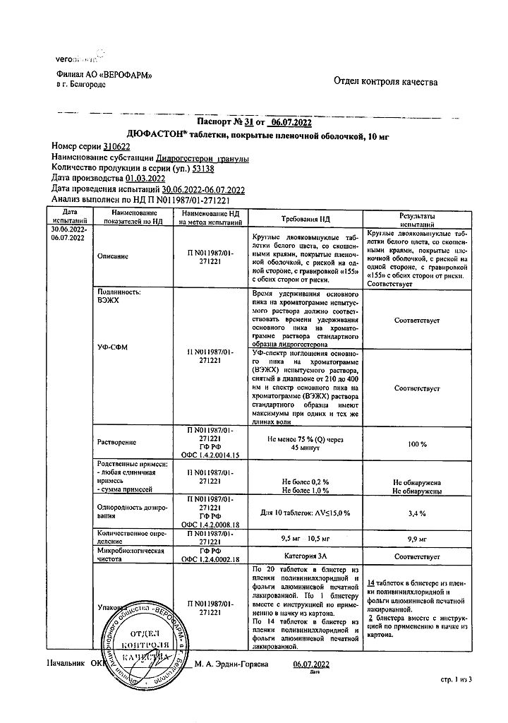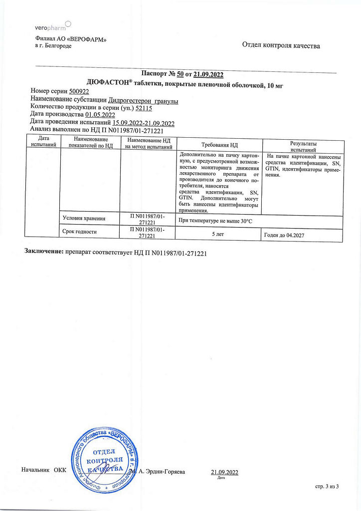 Документы Дюфастон таблетки покрыт.плен.об. 10 мг 28 шт