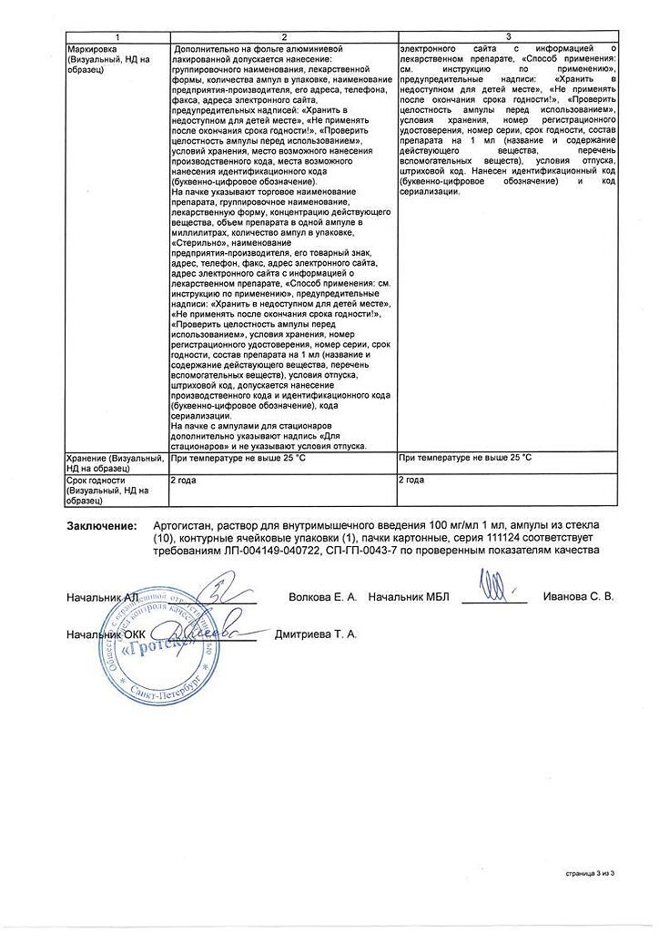 Документы Артогистан раствор для в/м введ 100 мг/мл 1 мл 10 шт