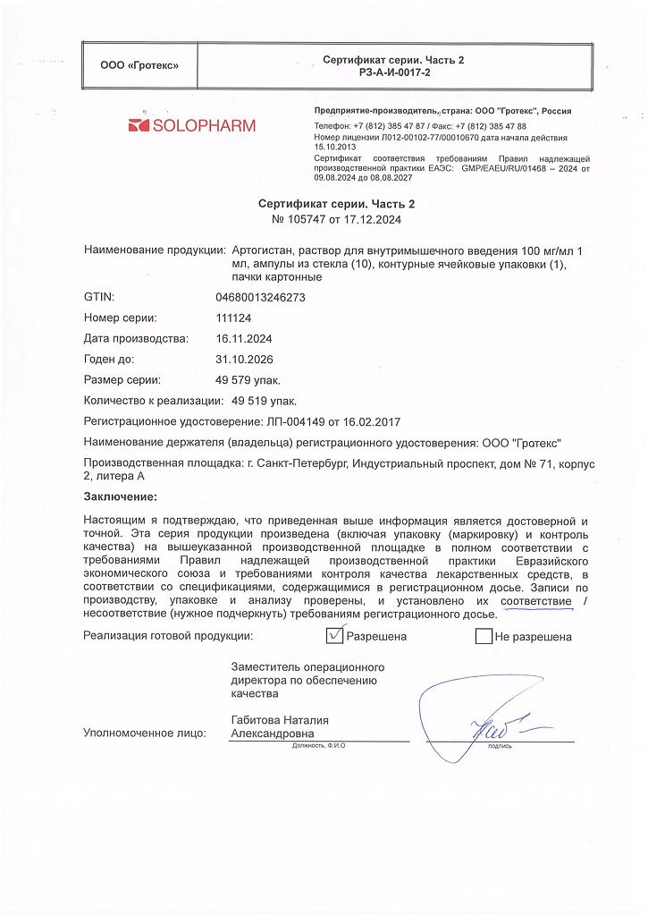 • 📒 Подробная инструкция по применению Артогистан раствор для в/м введ 100 мг/мл 1 мл 10 шт