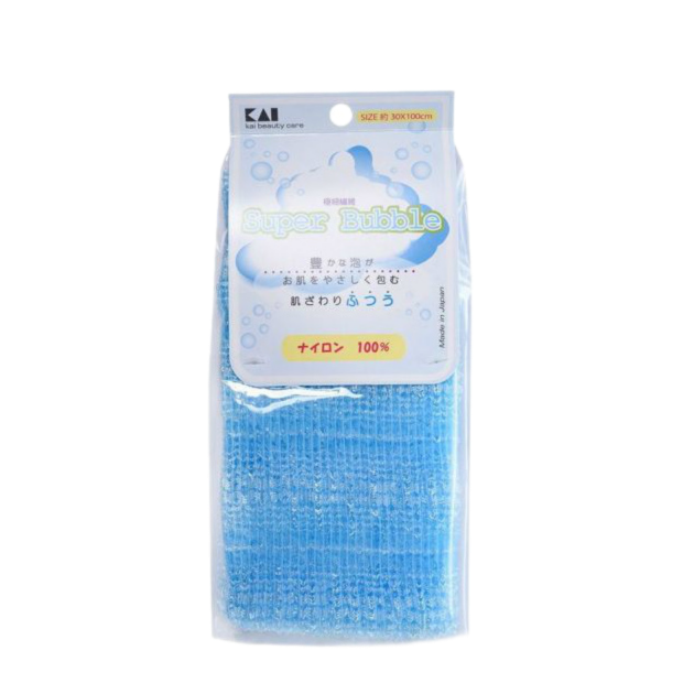 Kai Мочалка для тела (с объемным плетением средней жесткости) 30 х 100см Голубая 1 шт