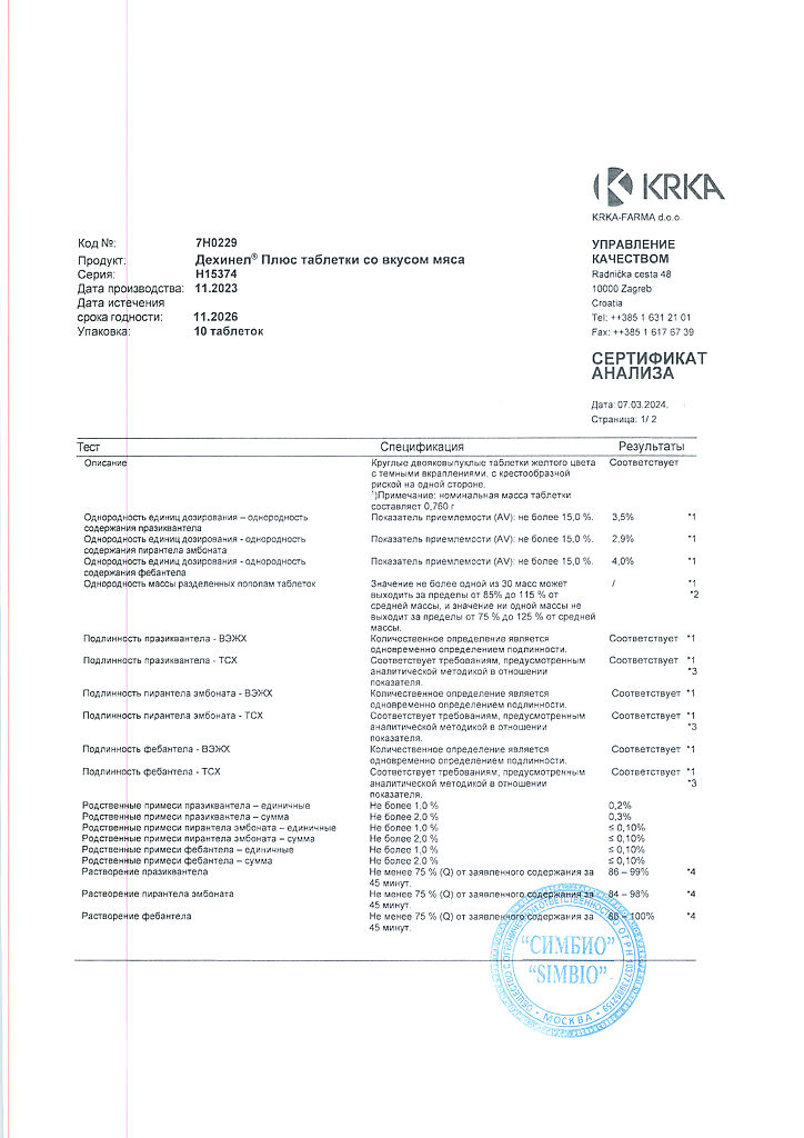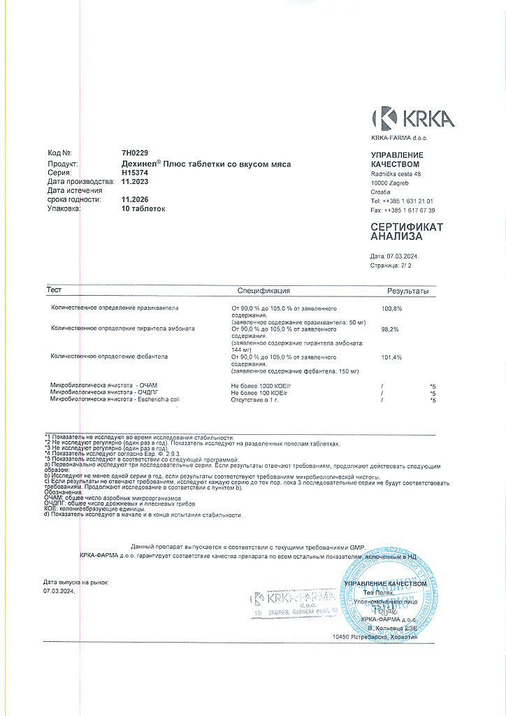 Действующее вещество: Фебантел, пирантел, празиквантел