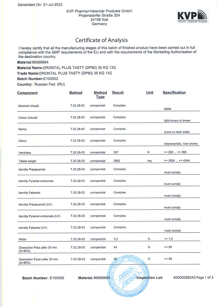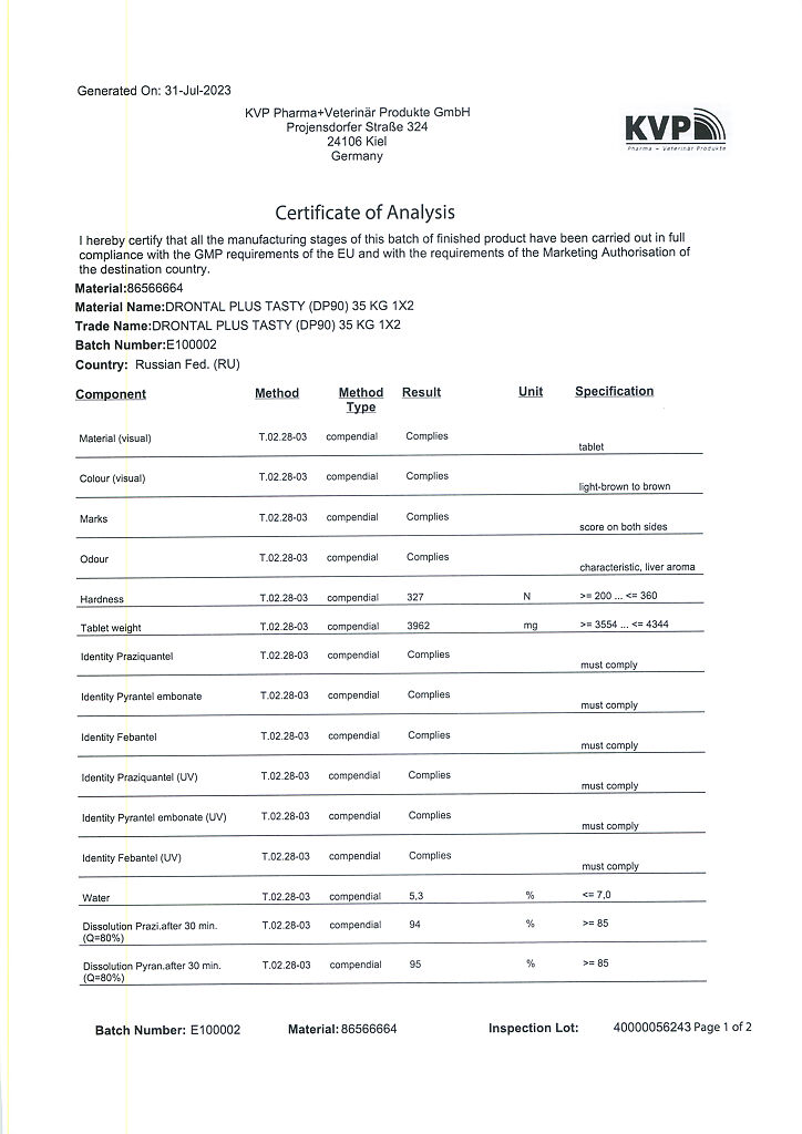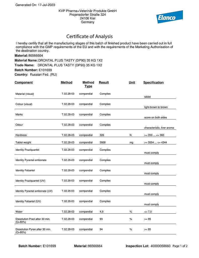 Документы Дронтал плюс XL таблетки от гельминтов и простейших со вкусом мяса для собак 2 шт