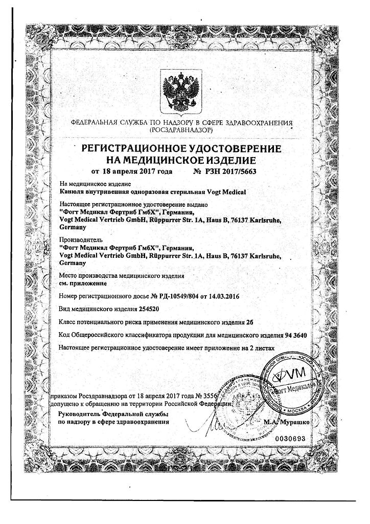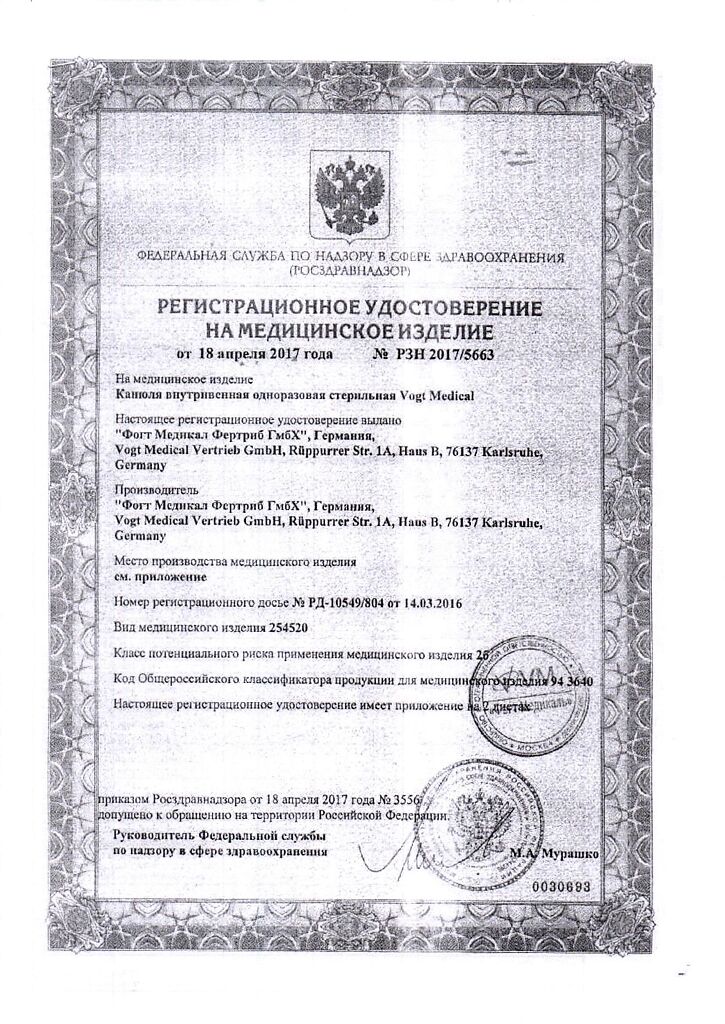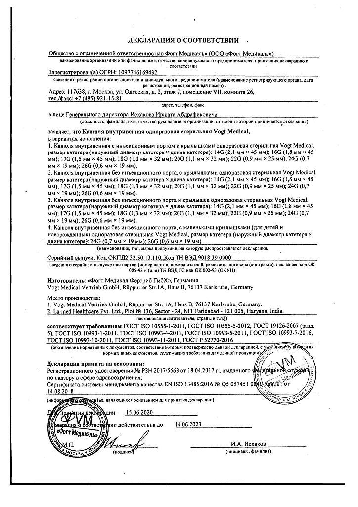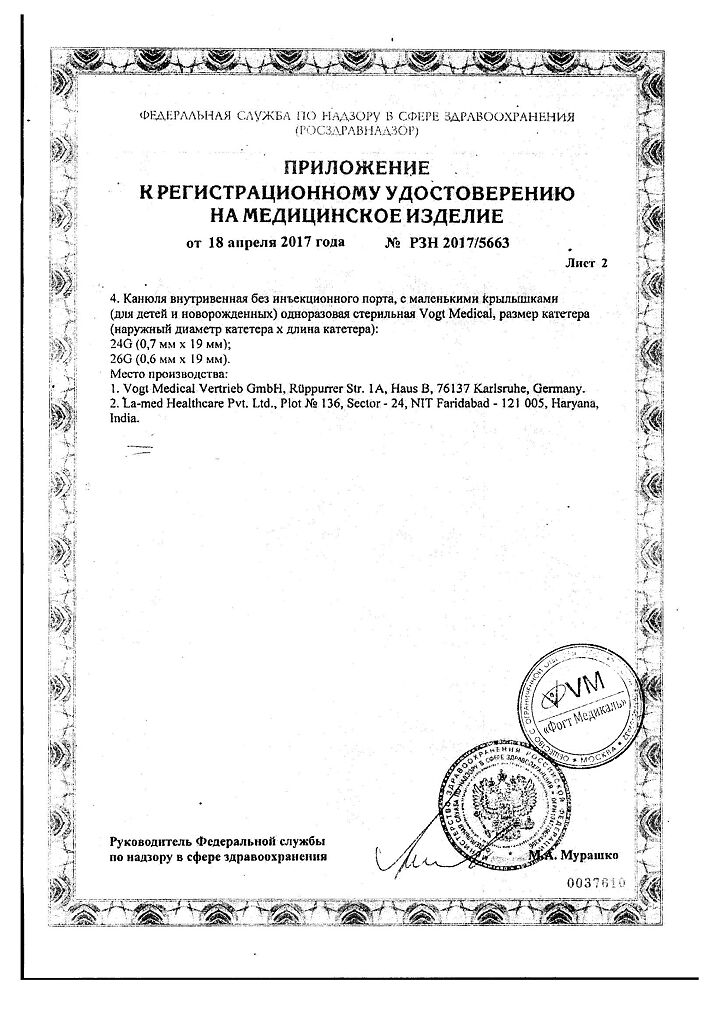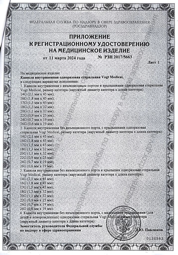 Документы Катетер для периферических вен с доп.портом стерильный фиолетовый 26g 0,6х19 мм вет
