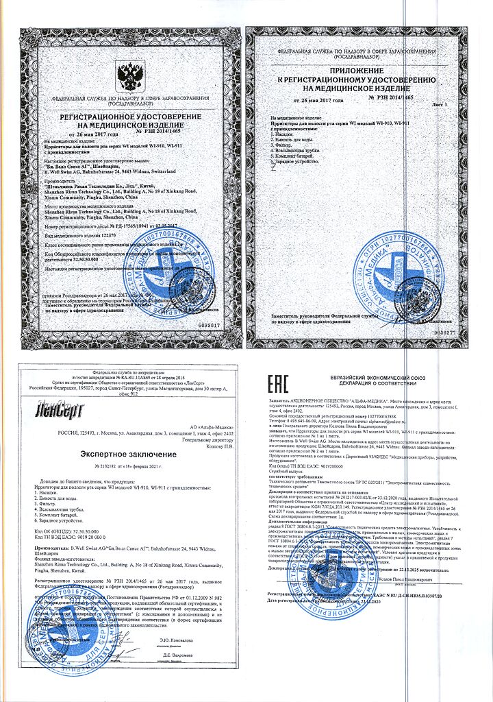 Документы Ирригатор для полости рта B.Well WI-911 с увеличенной емкостью 330 мл 1 шт