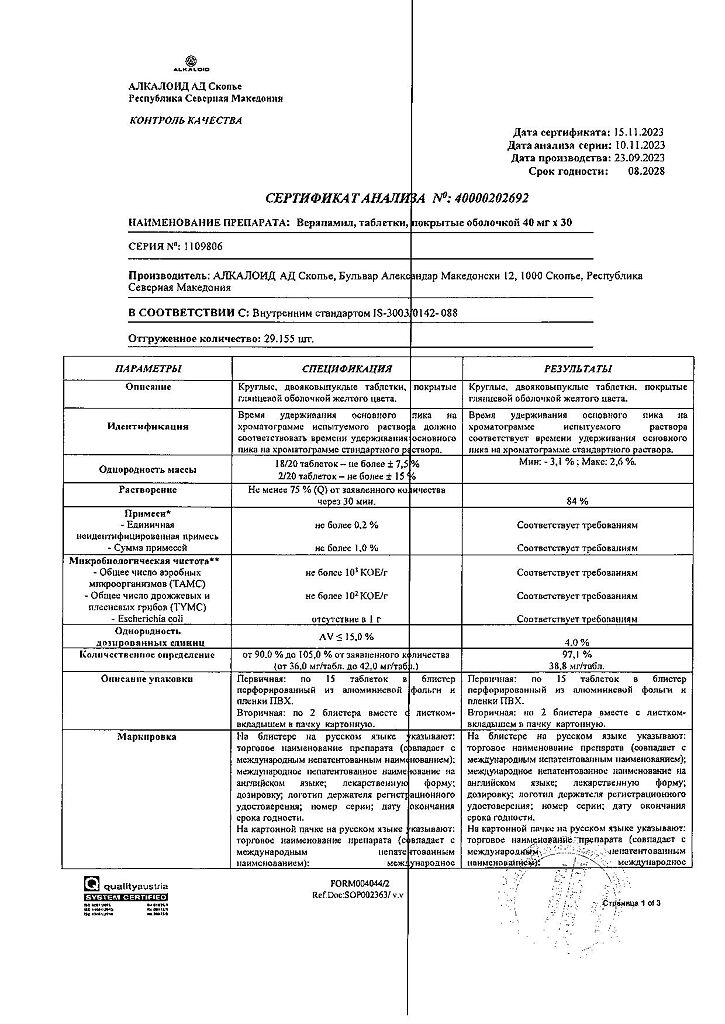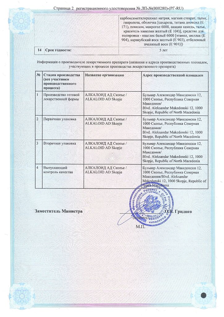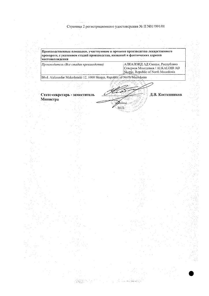 Производитель: Алкалоид АД Скопье, Республика Северная Македония