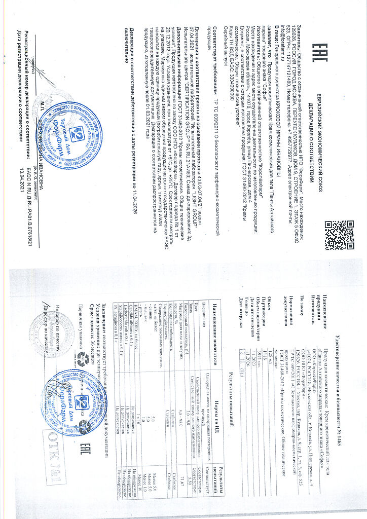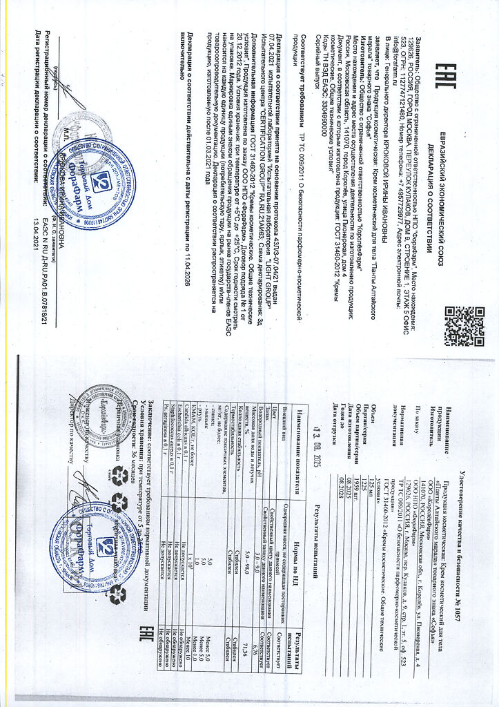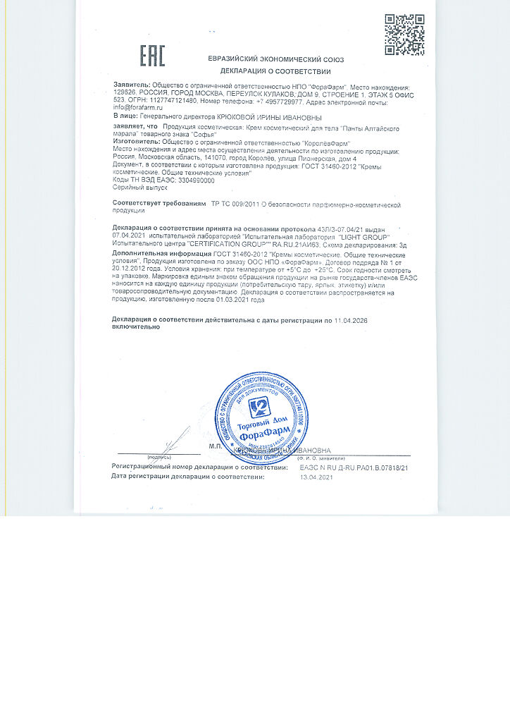 Документы Софья крем для тела Панты алтайского марала с пчелиным ядом 125 мл 1 шт