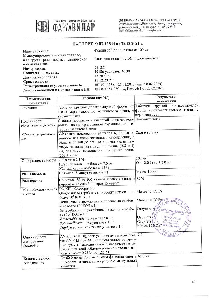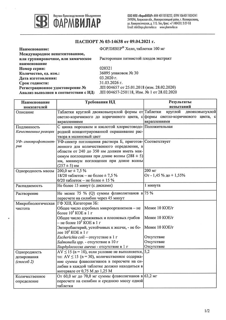 Действующее вещество: Расторопши пятнистой плодов экстракт