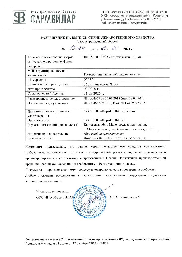 Производитель: ФармВилар НПО ООО, Россия