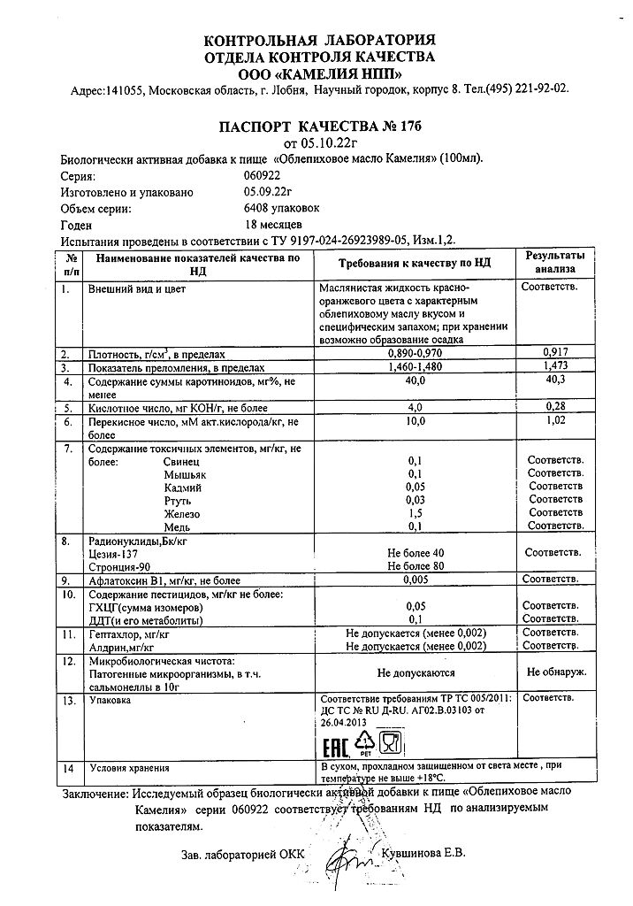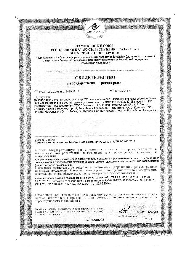 Все варианты Облепиховое масло Камелия