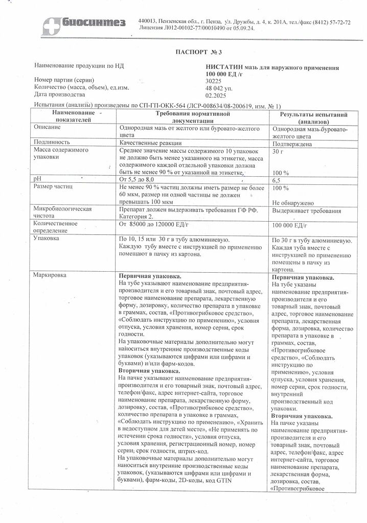 Действующее вещество: Нистатин