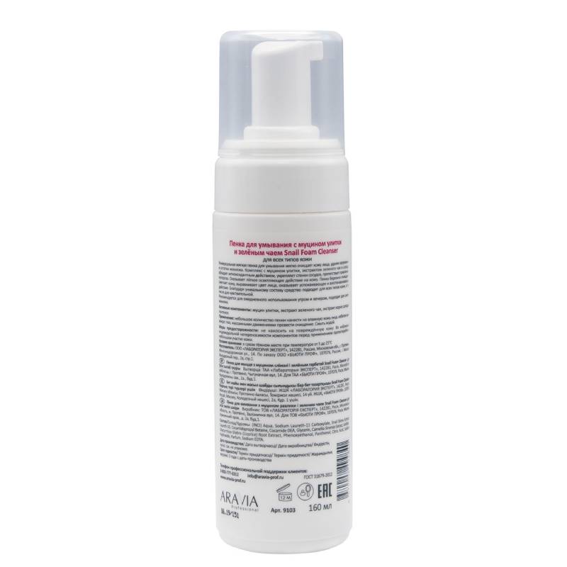 • 📒 Подробная инструкция по применению Aravia Professional Пенка для умывания с муцином улитки и зеленым чаем Snail Foam Cleanser 160 мл 1 шт