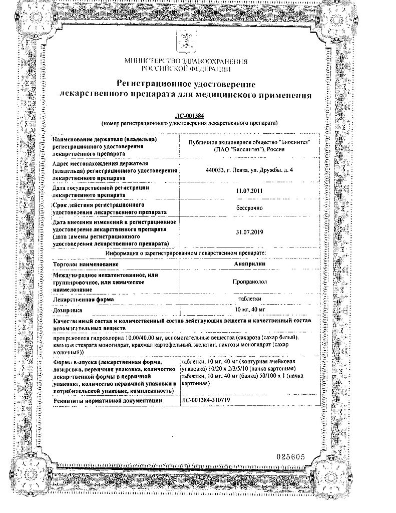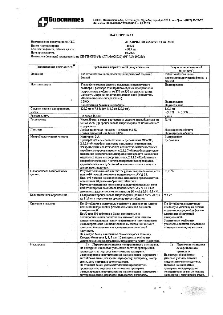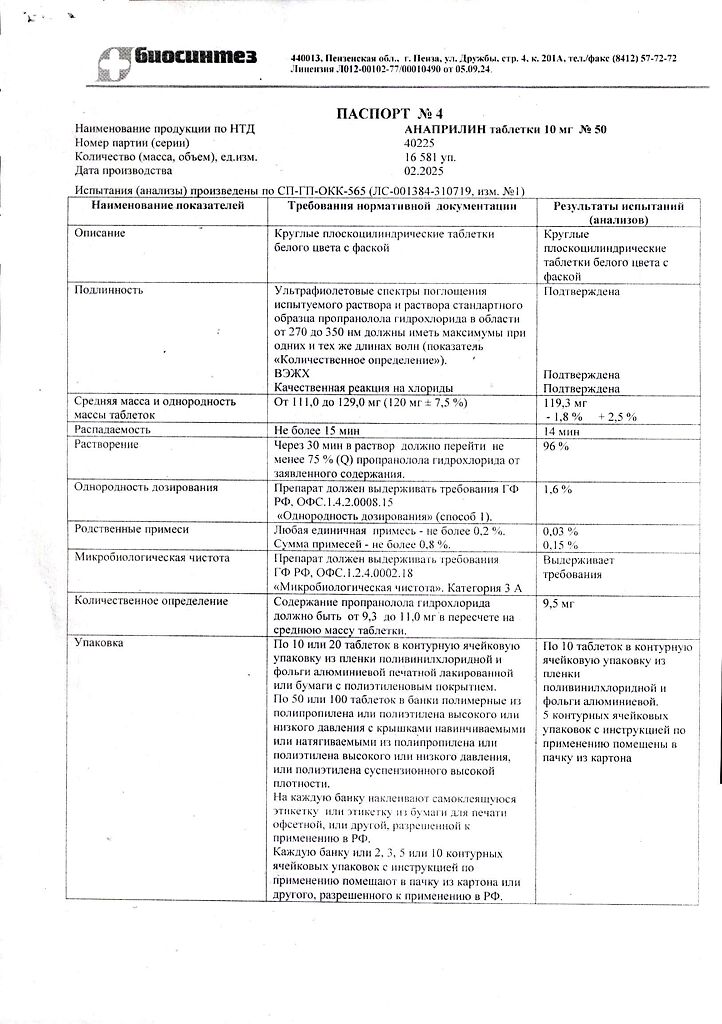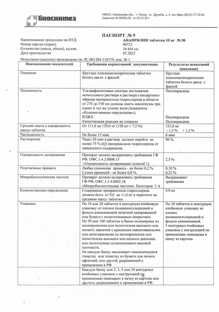 • 📒 Подробная инструкция по применению Анаприлин таблетки 10 мг 50 шт