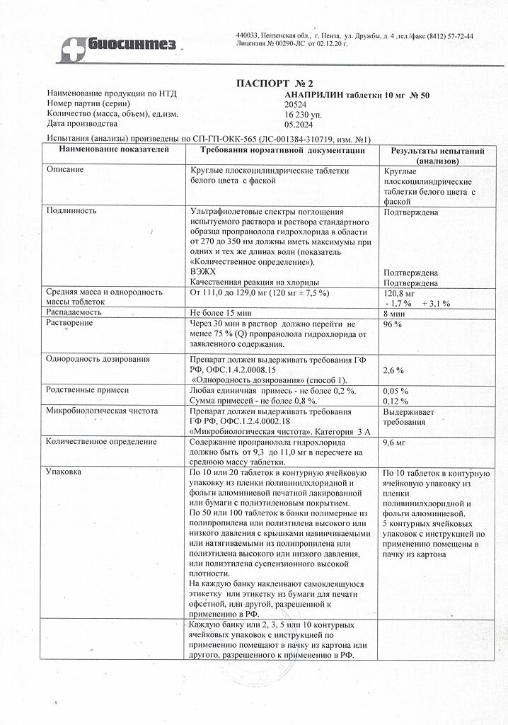 • 🏪 Купить Анаприлин таблетки 10 мг 50 шт можно на сайте и в наших аптеках в Екатеринбург