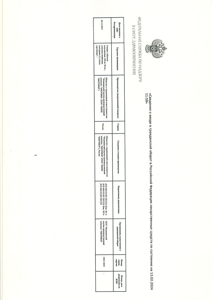 Страница носит информационный характер о наличии препаратов. Перед назначением и применением проконсультируйтесь с врачом