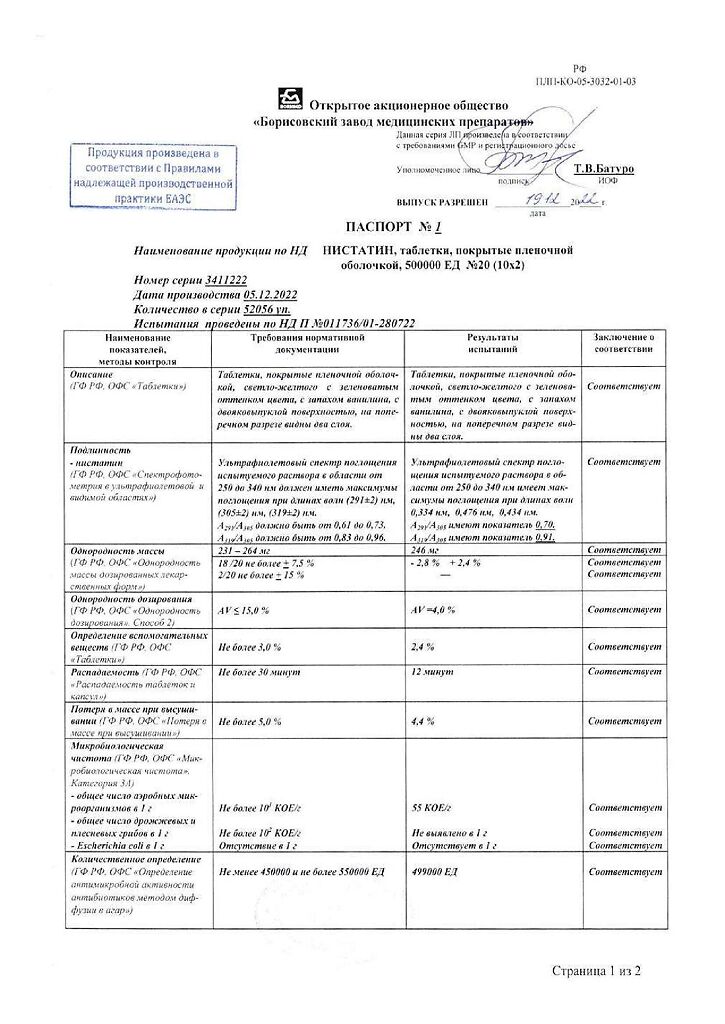 Производитель: Борисовский завод медицинских препаратов, Беларусь