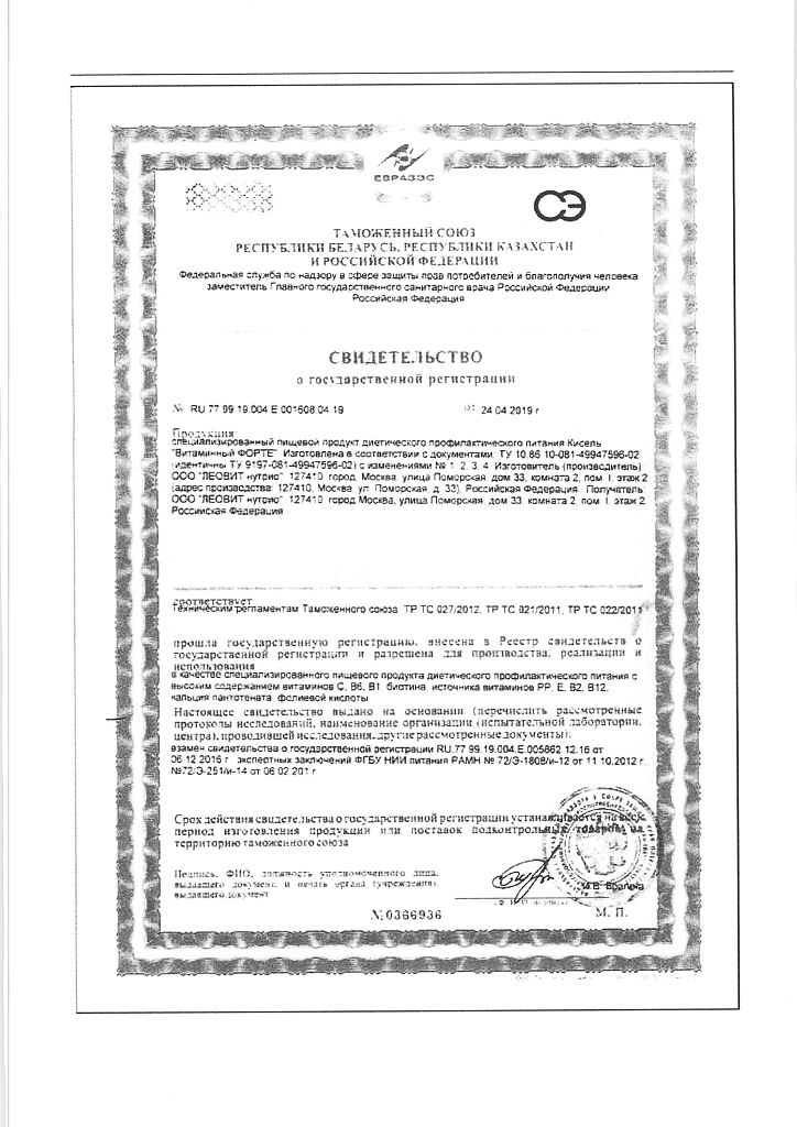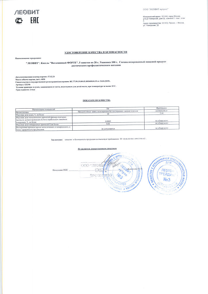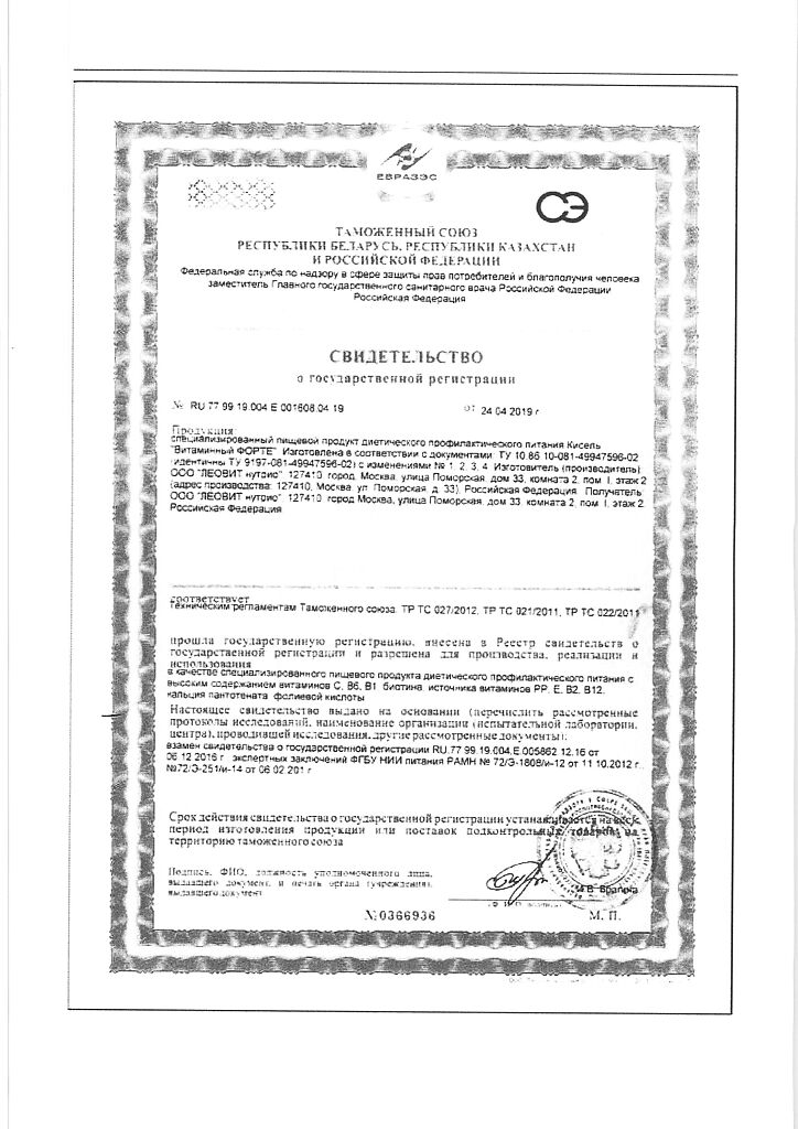 Документы Леовит Кисель Витаминный Форте пакеты по 20 г 5 шт