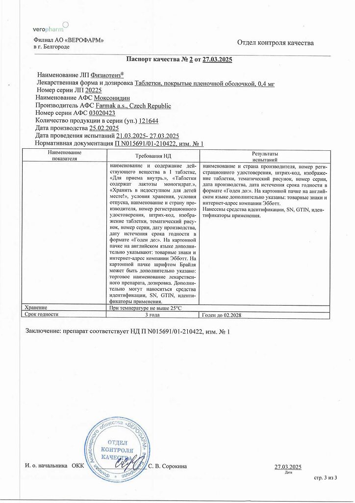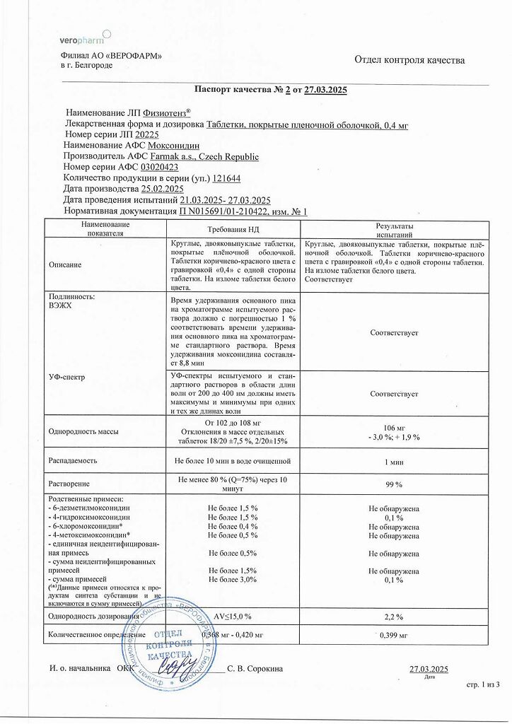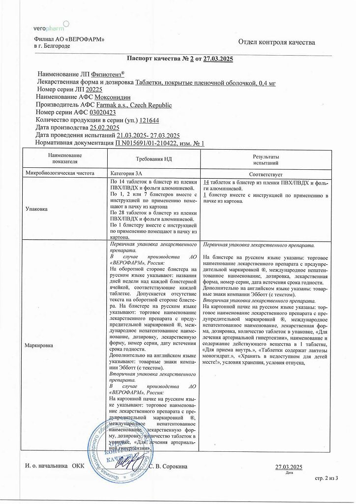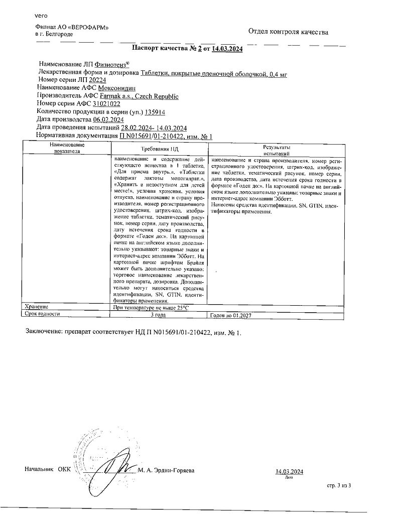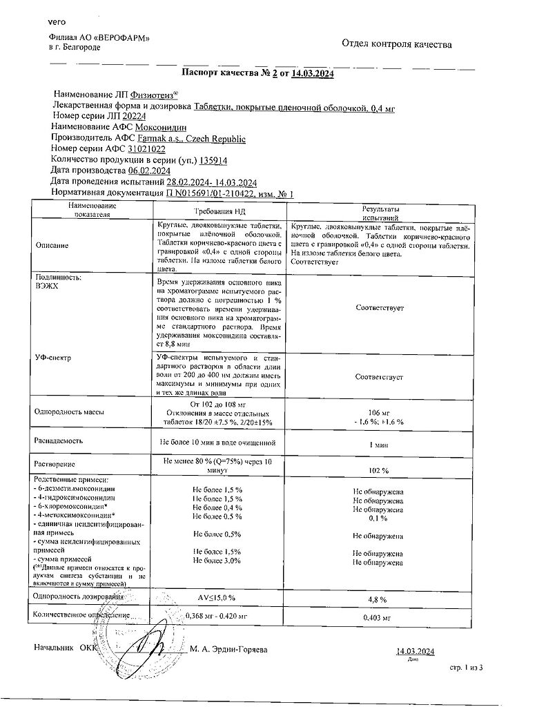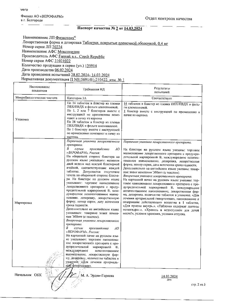 Документы Физиотенз таблетки покрыт.плен.об. 0,4 мг 14 шт
