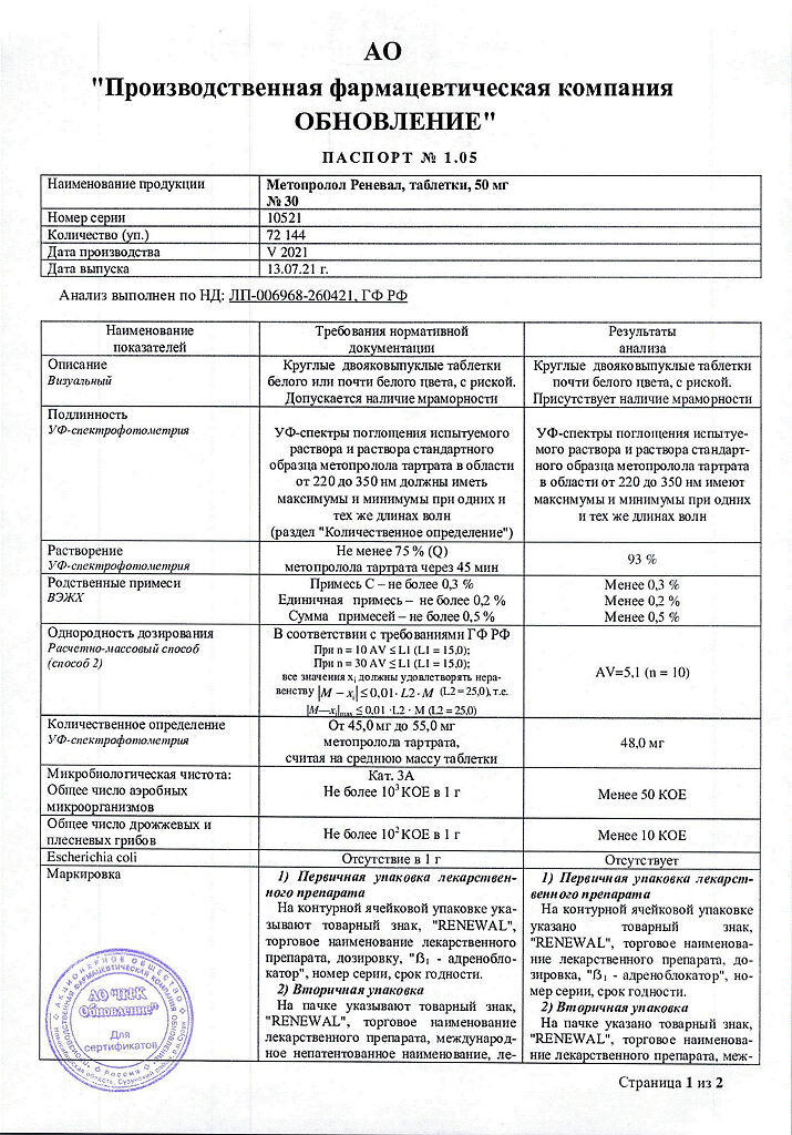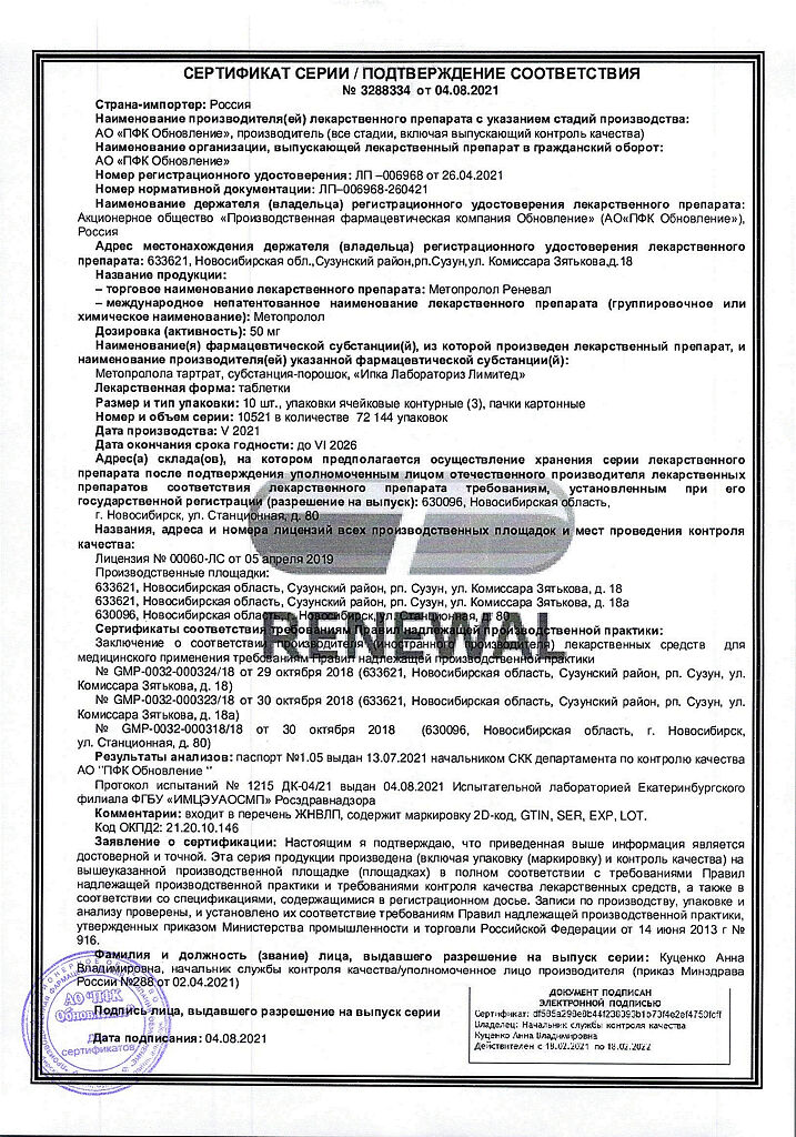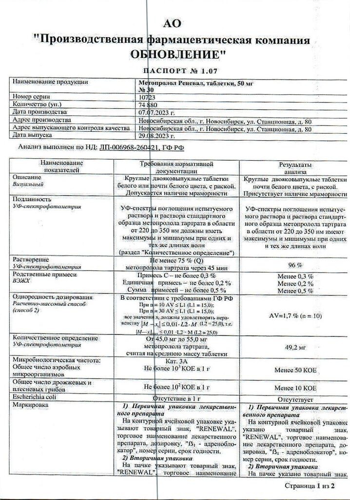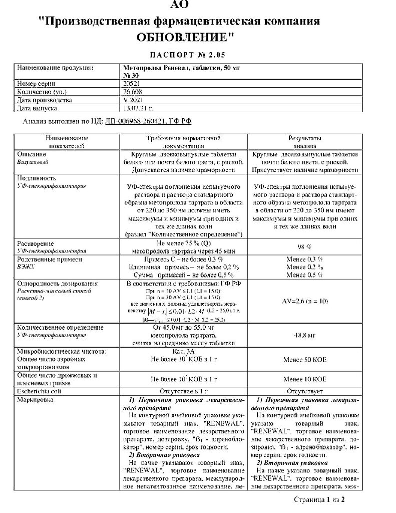 100 мг препарата Метопролол Реневал один раз в сутки, рекомендуется принимать таблетку утром. При необходимости доза может быть увеличена.