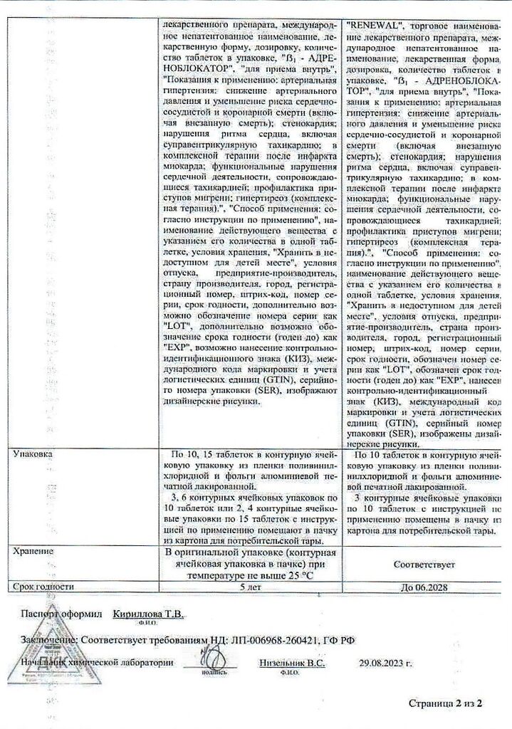 Пациенты с симптоматической сердечной недостаточностью в сочетании с острым инфарктом миокарда и нестабильной стенокардией исключались из исследований, на основании которых определялись показания к назначению. Эффективность и безопасность препарата для данной группы пациентов не описана. Применение при нестабильной сердечной недостаточности в стадии декомпенсации противопоказано. Пациенты, пользующиеся контактными линзами, должны учитывать, что на фоне лечения b-адреноблокаторами возможно уменьшение продукции слезной жидкости.