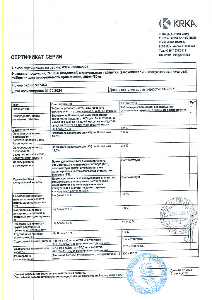 Действующее вещество: Амоксициллин, Клавулановая кислота