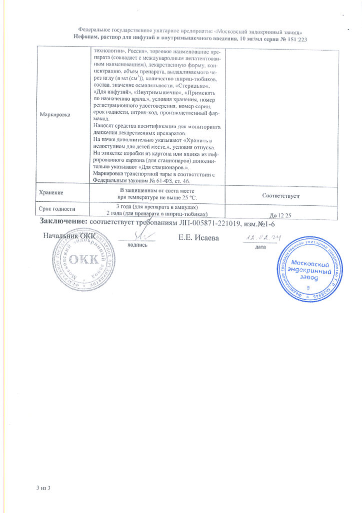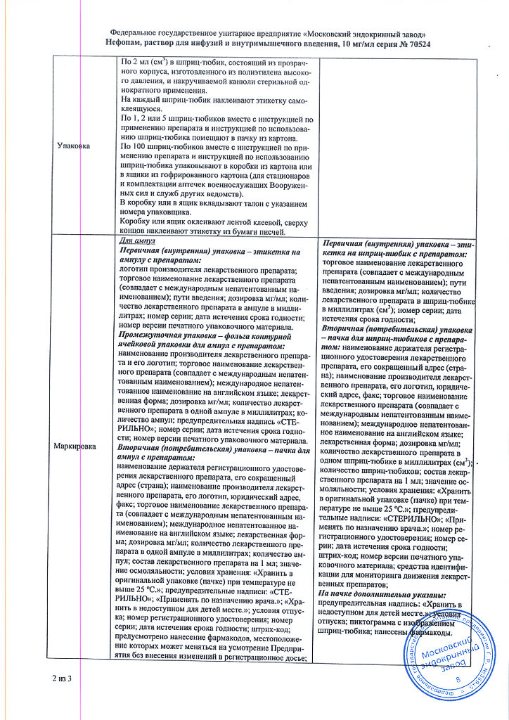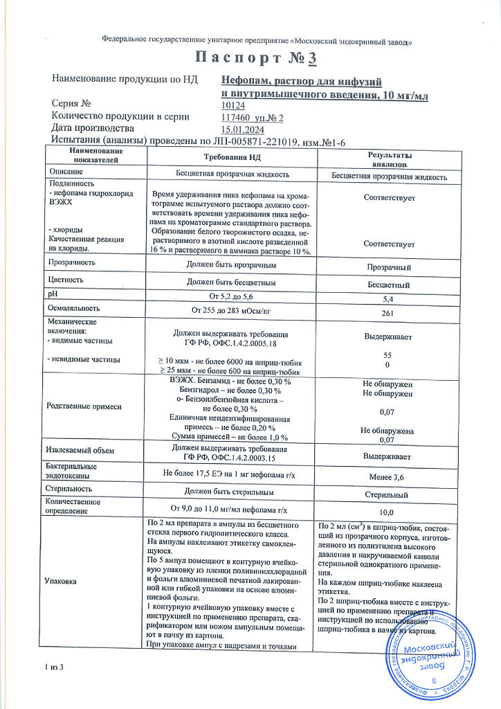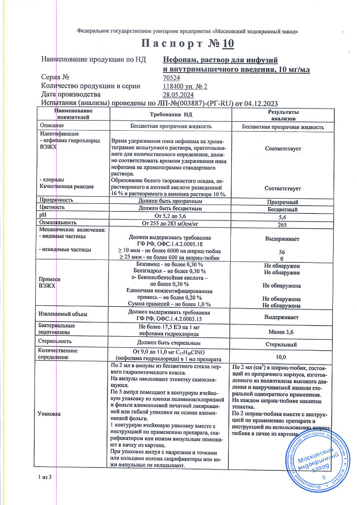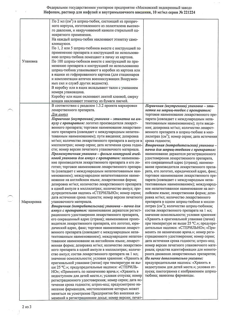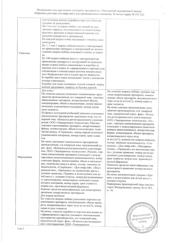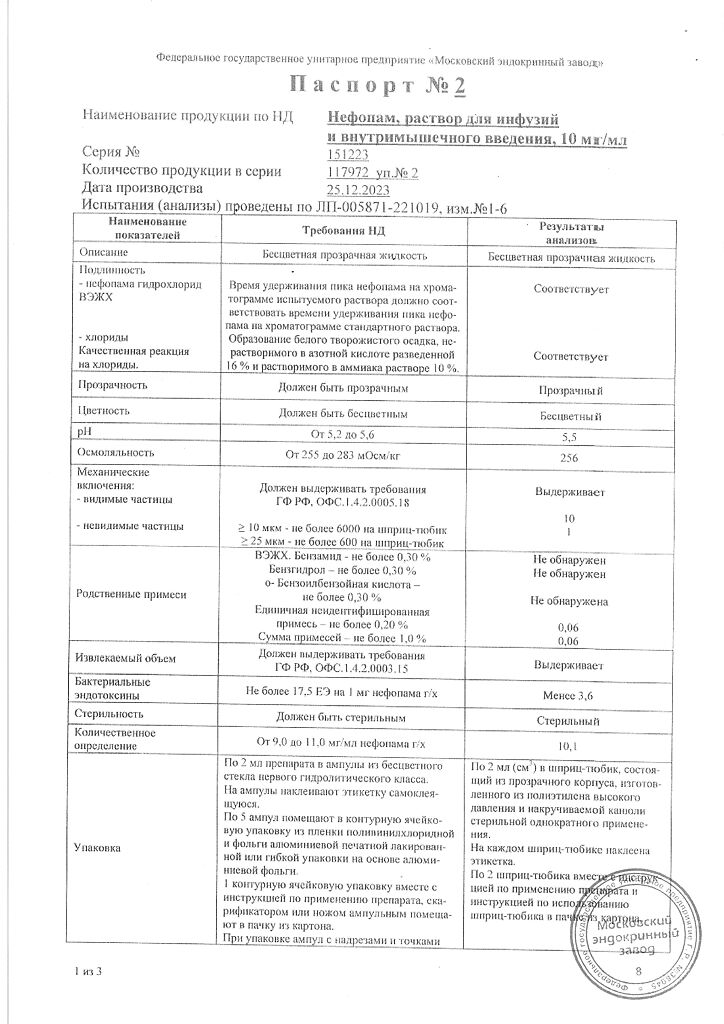 Документы Нефопам раствор для инфузий и в/м введ 10 мг/мл 2 мл шприц-тюбики 2 шт