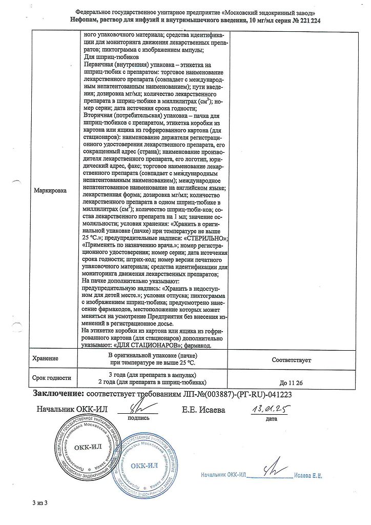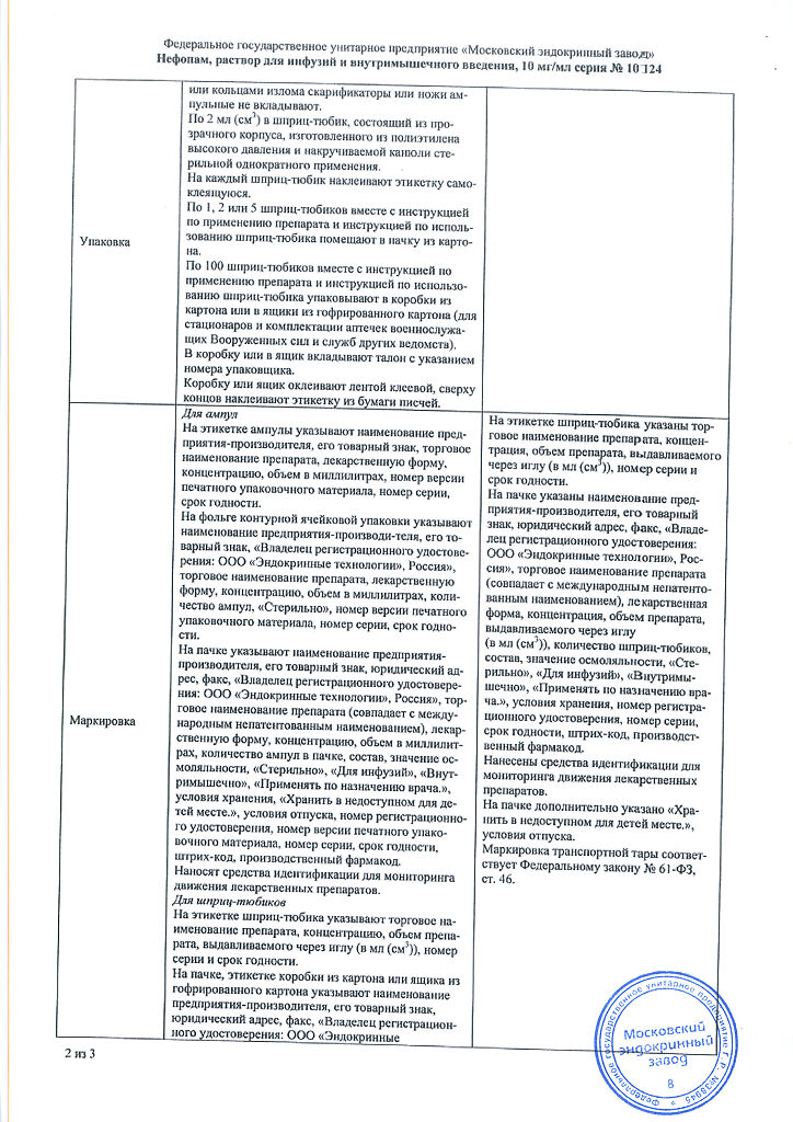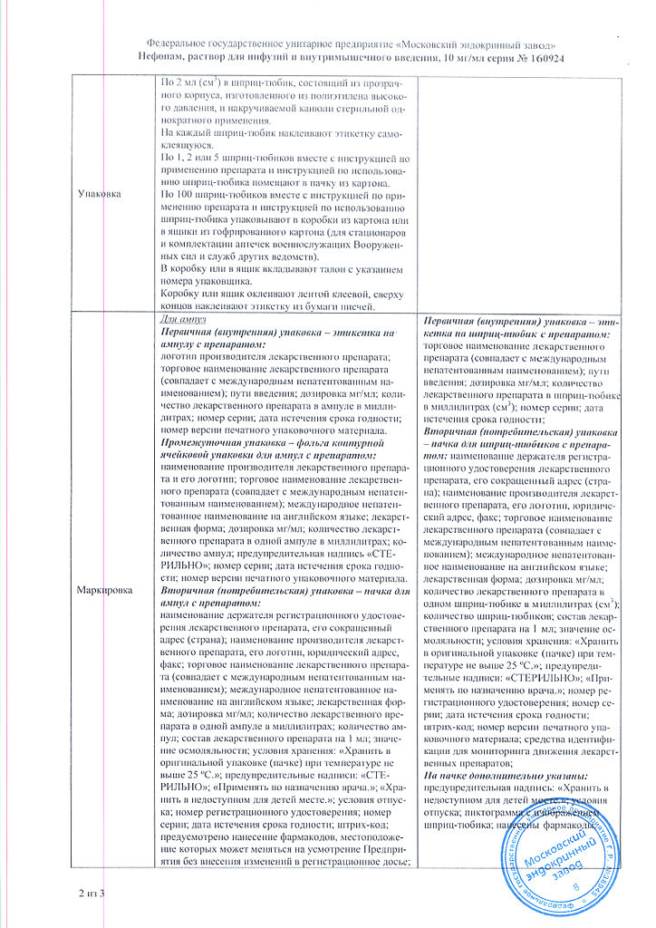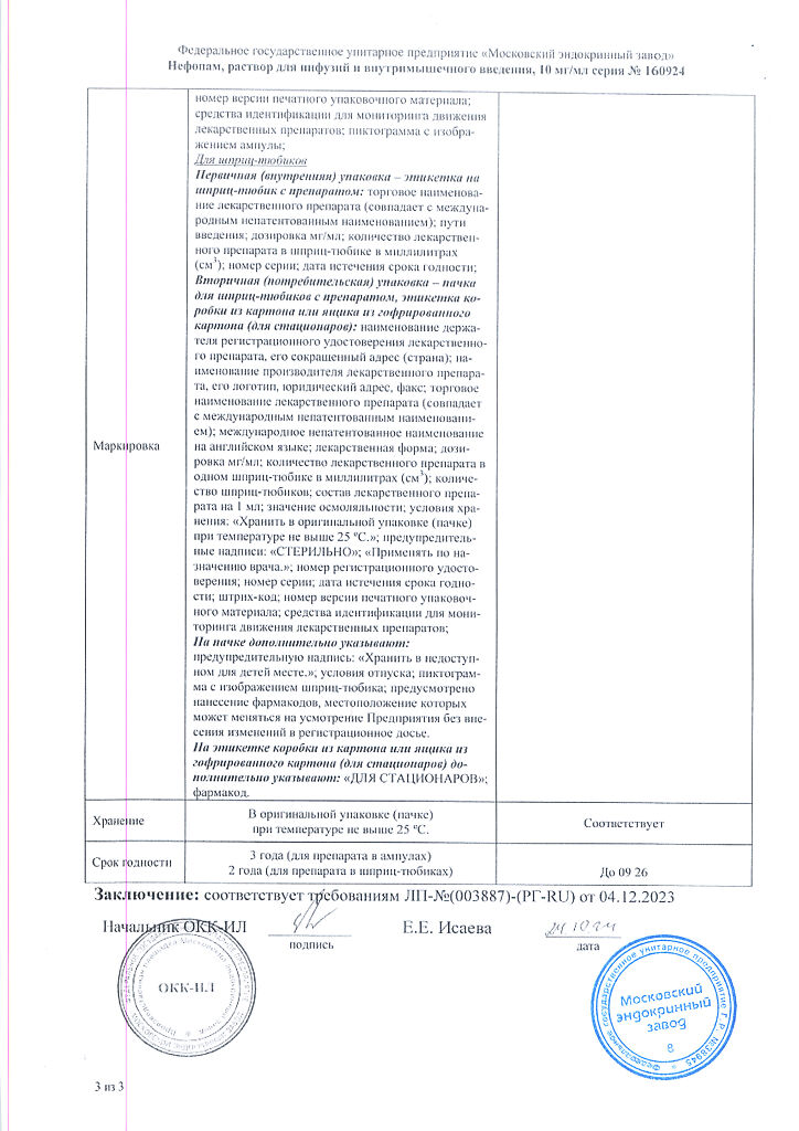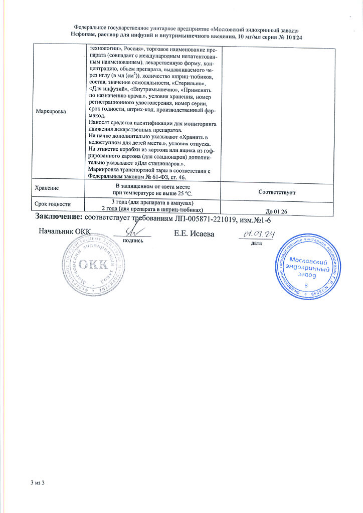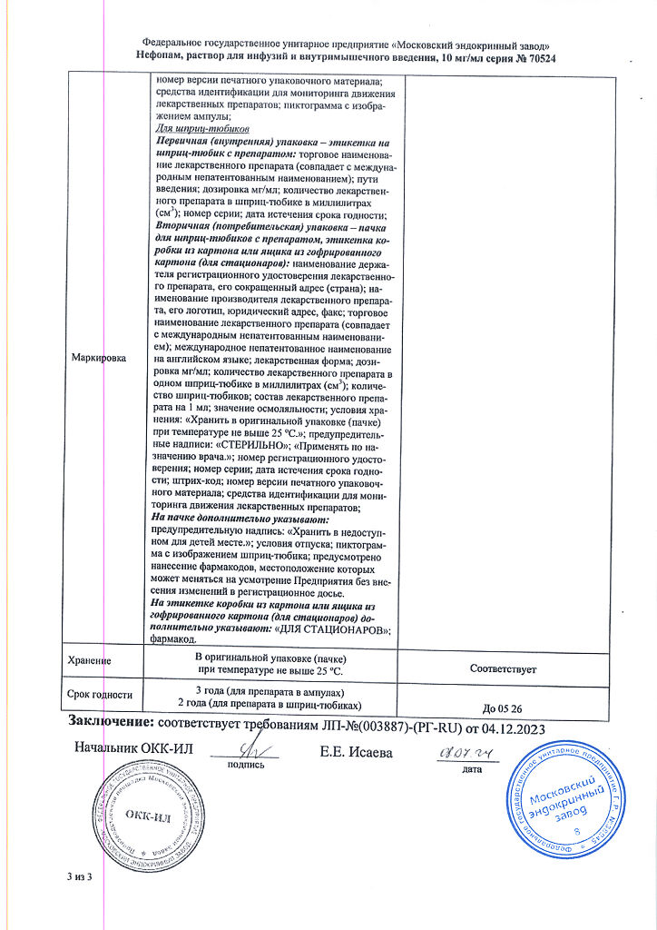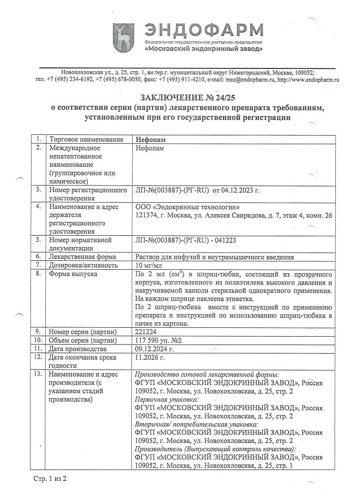 Документы Нефопам раствор для инфузий и в/м введ 10 мг/мл 2 мл шприц-тюбики 2 шт
