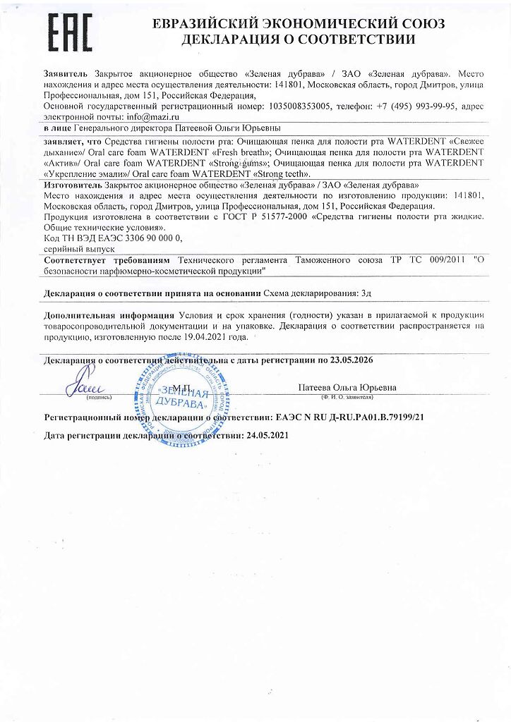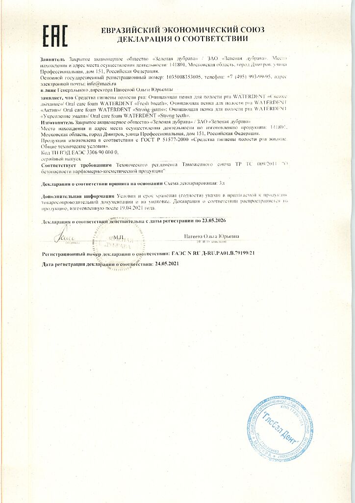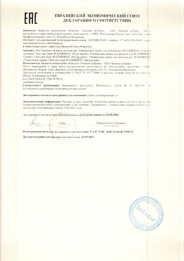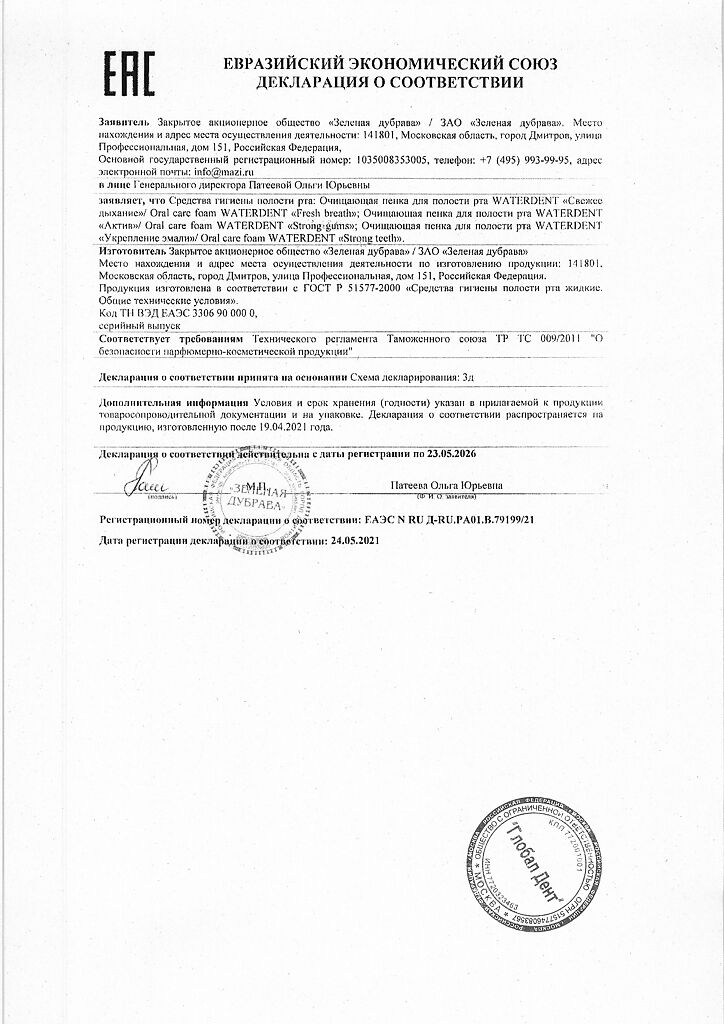 Содержит фтористый натрий. Массовая доля фторидов F ͞ = 250 ppm.