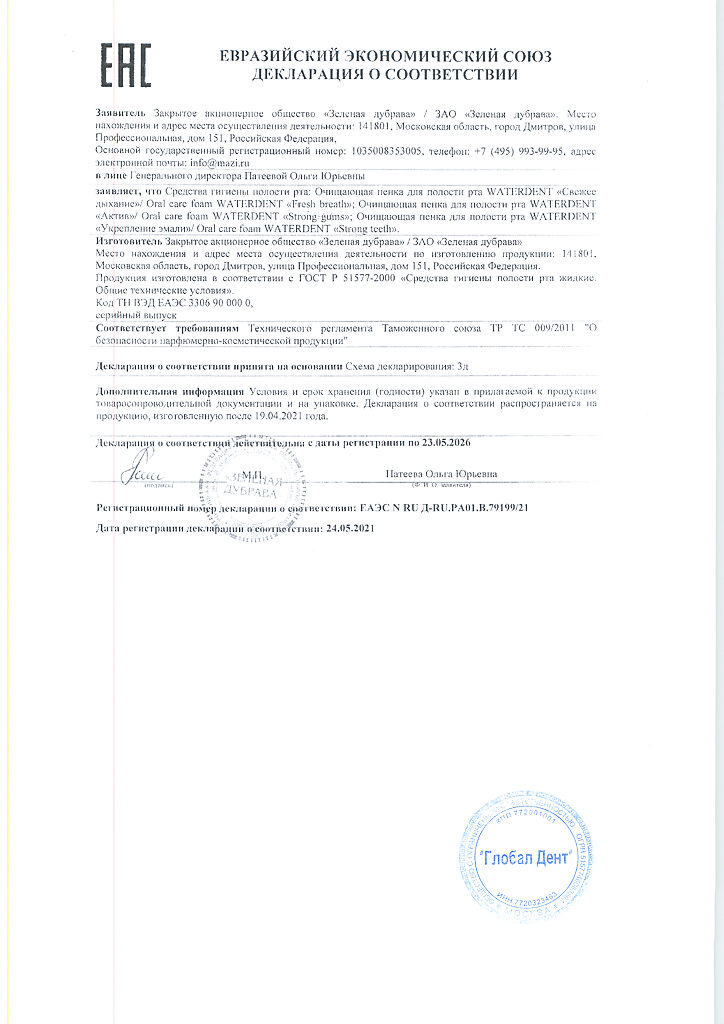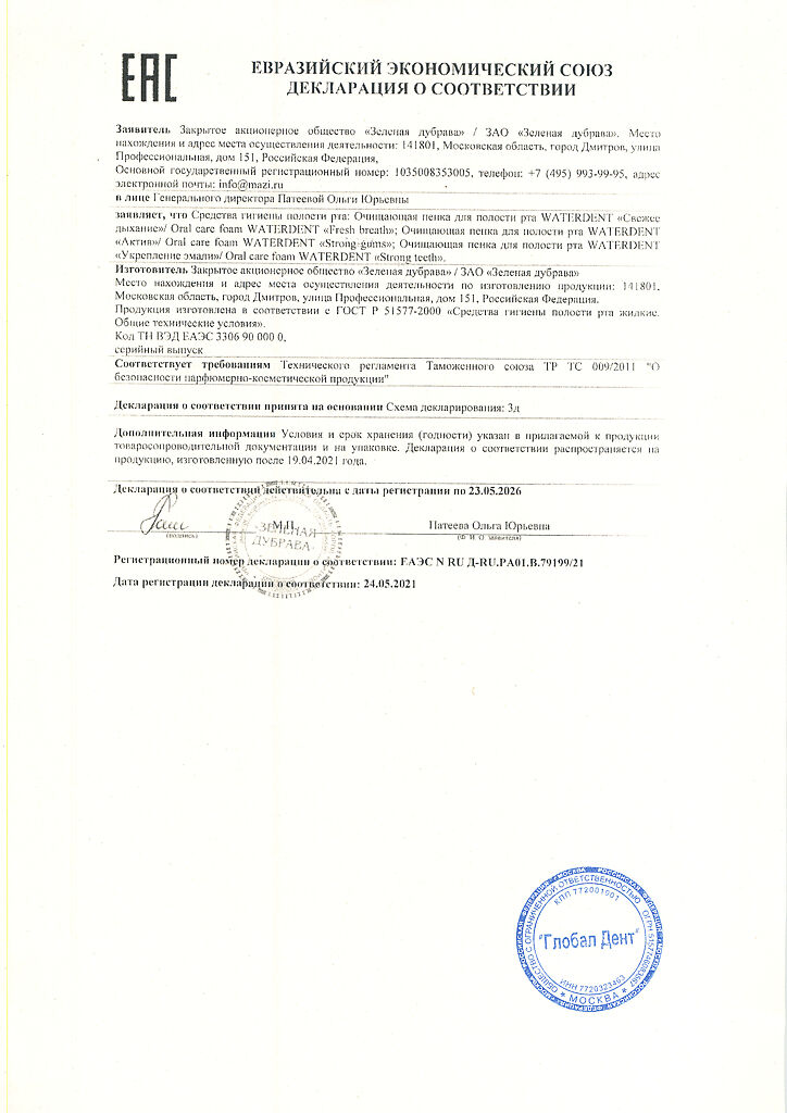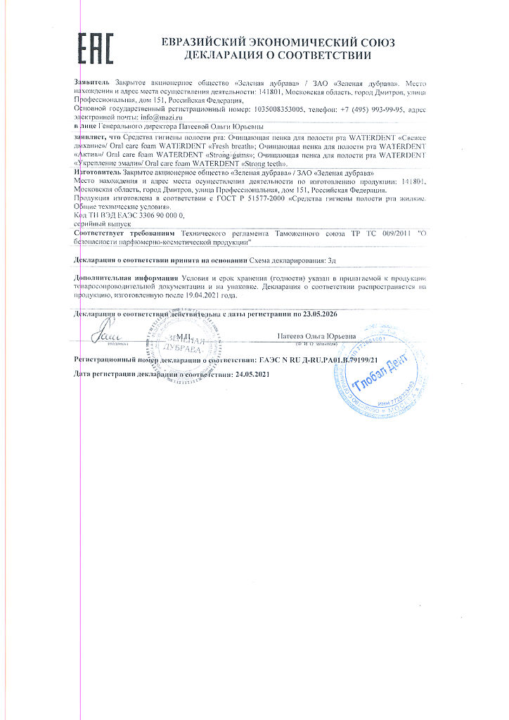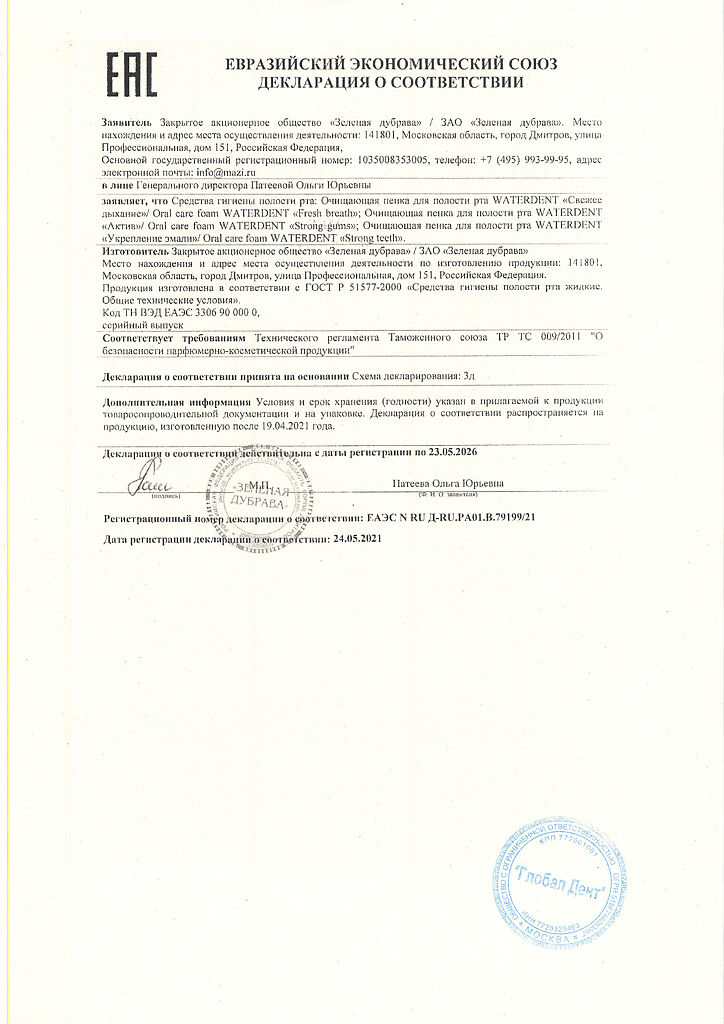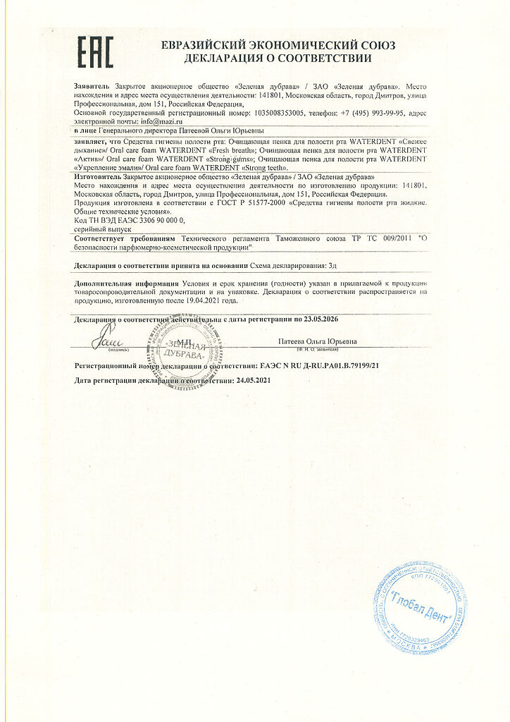 Содержит фтористый натрий. Массовая доля фторидов F ͞ = 250 ppm.