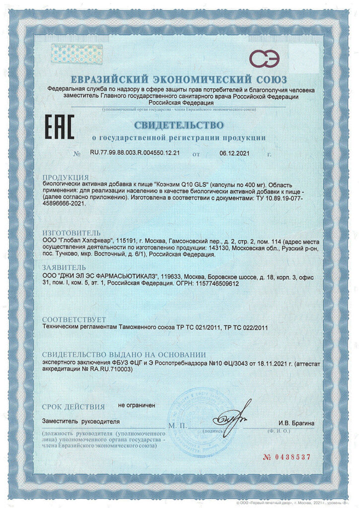 Документы Коэнзим Q10 GLS капсулы по 310 мг 60 шт