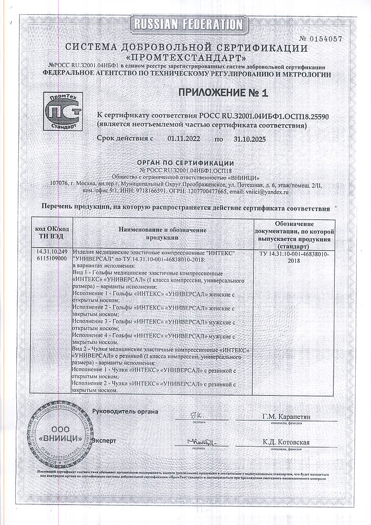 Цены на Чулки компрессионные Интекс Универсал в других городах