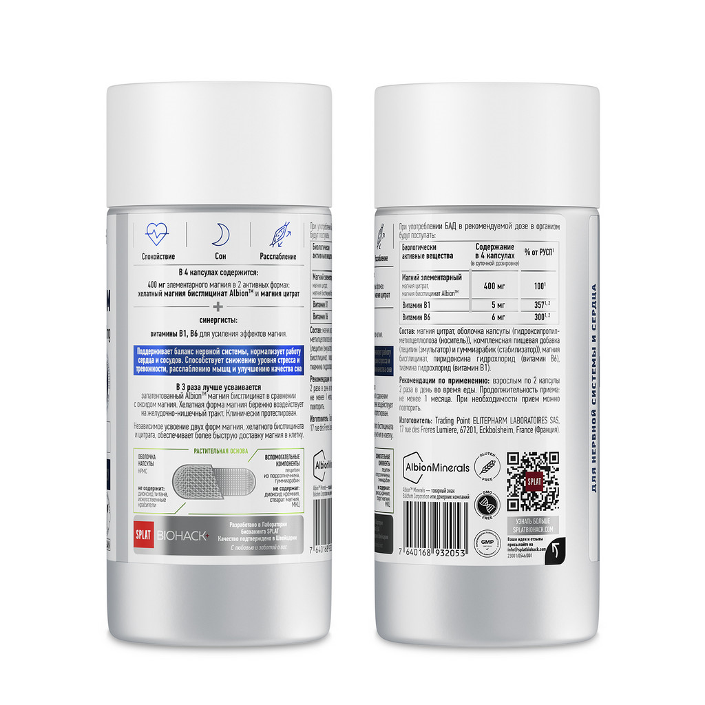 Сплат (Splat) Биохак+ Магний 400 мг плюс синергисты В1,В6 капсулы массой 857 мг 60 шт: 8 отзывов покупателей и фармацевтов