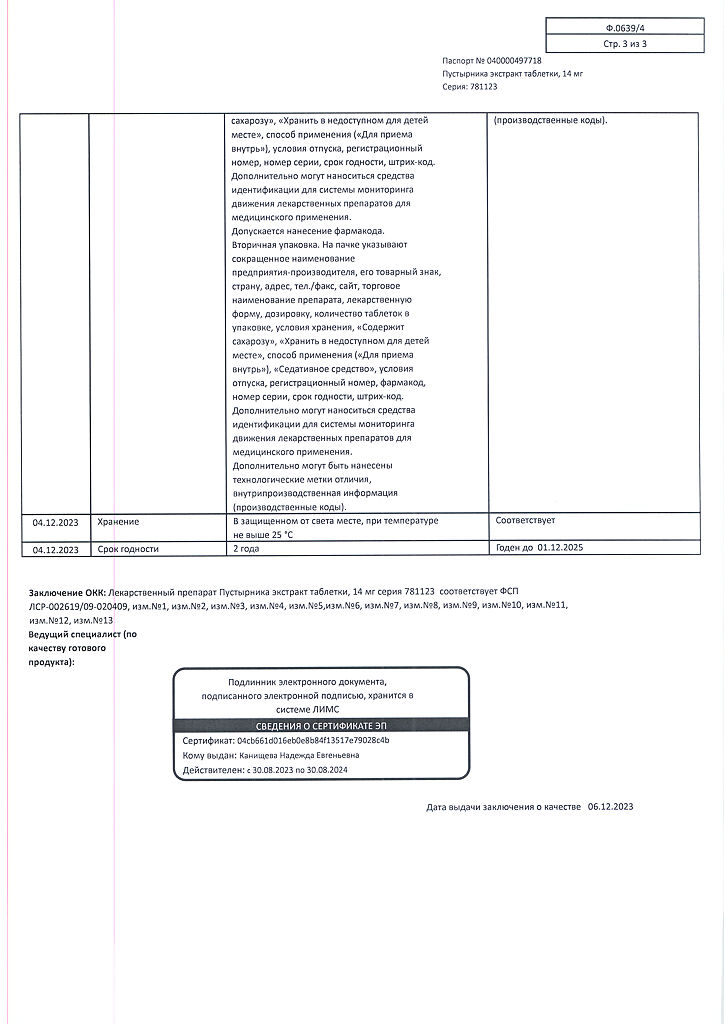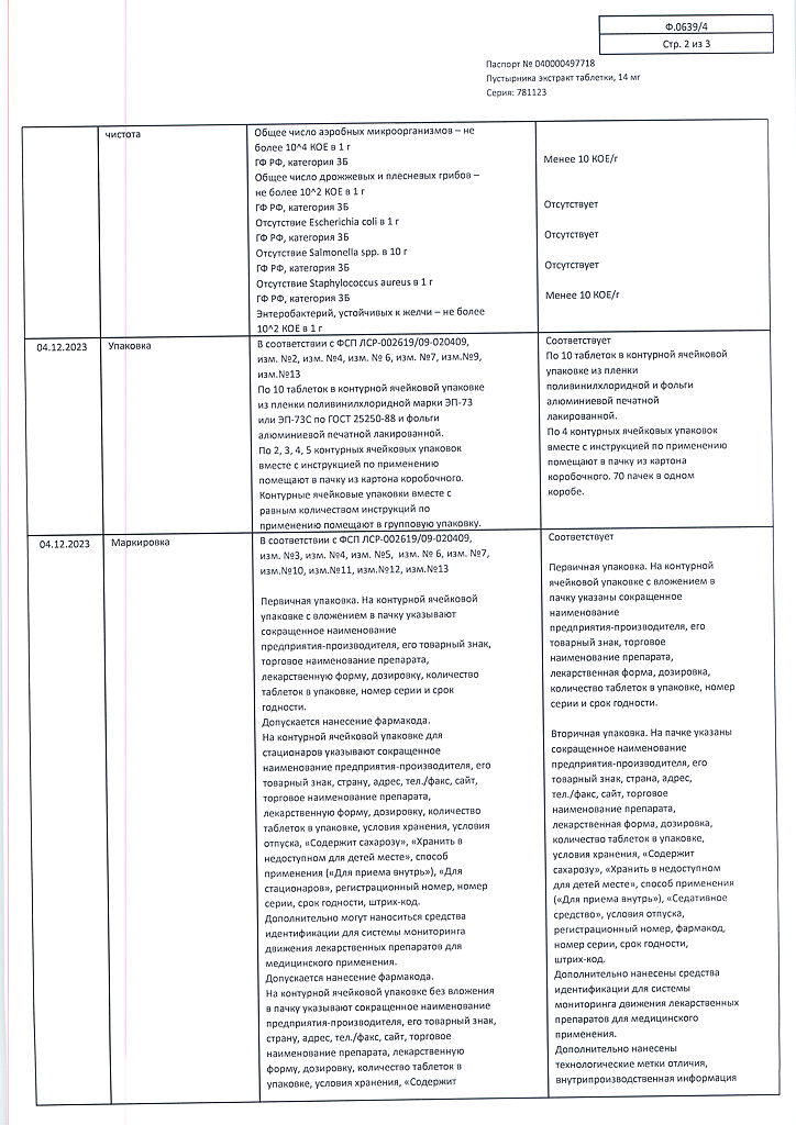 Документы Пустырника экстракт таблетки 14 мг 40 шт
