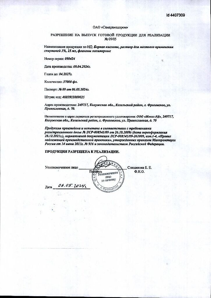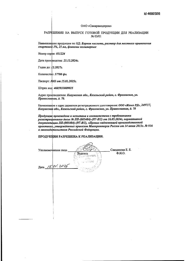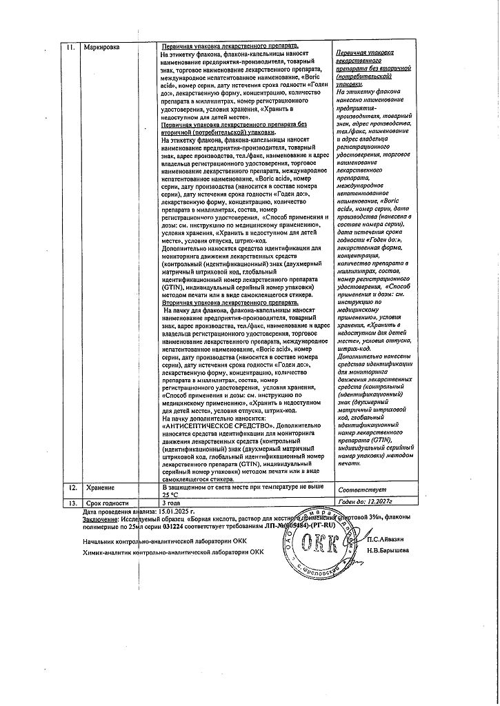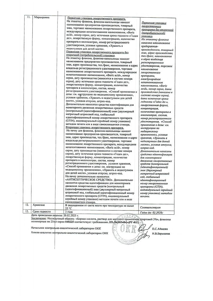 Действующее вещество: Борная кислота