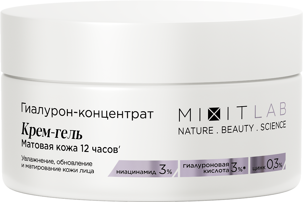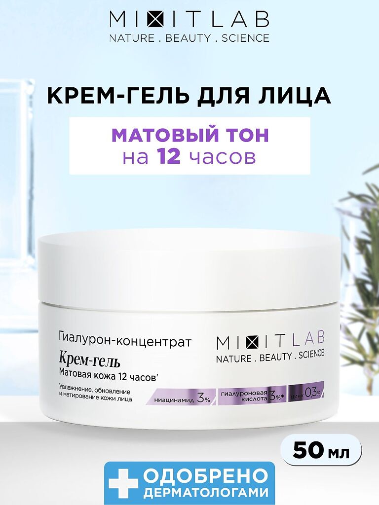 Mixit Lab Hyaluron Гиалурон-концентрат Крем-гель матовая кожа 12 часов с ниацинамидом и цинком для жирной кожи 50 мл 1 шт
