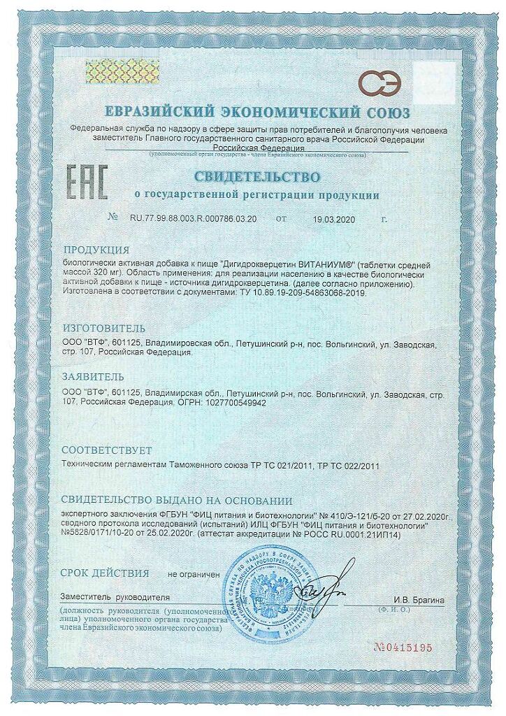 Документы Витаниум Дигидрокверцетин таблетки массой 320 мг 50 шт