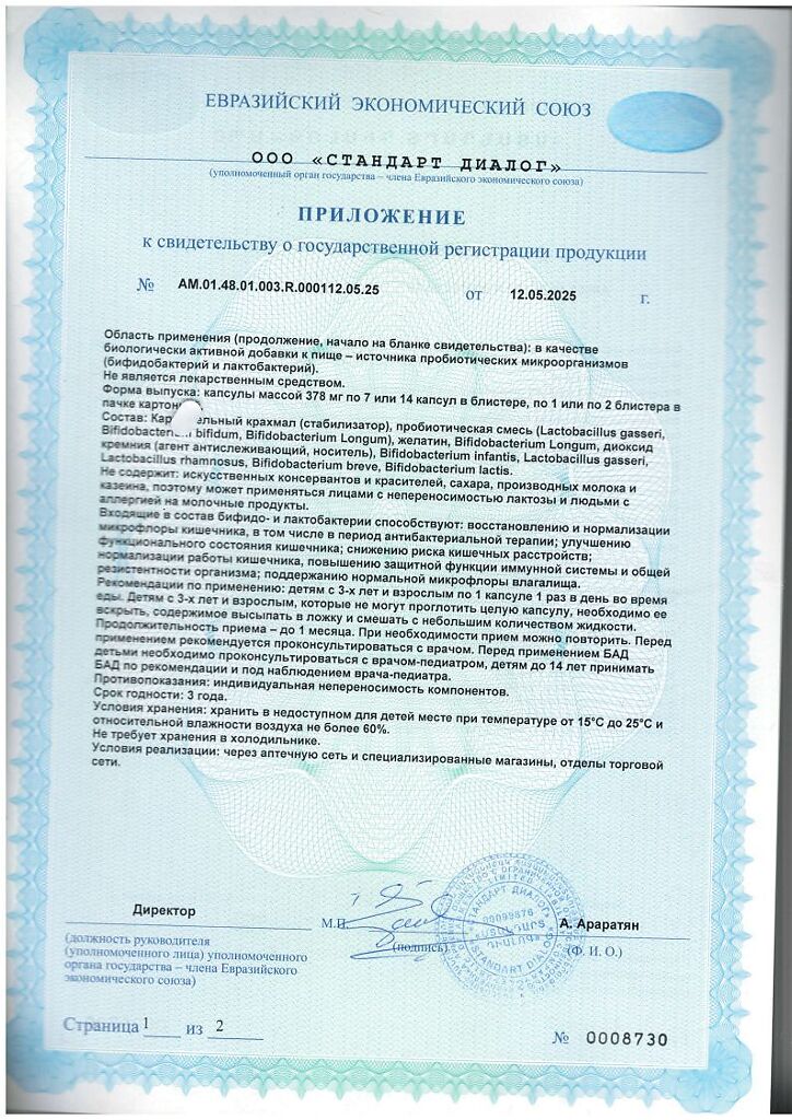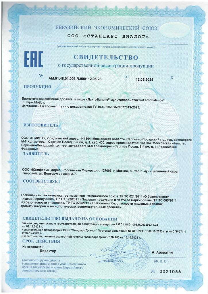 Документы Лактобаланс мультипробиотик / Lactobalance multiprobiotic капсулы массой 378 мг 28 шт