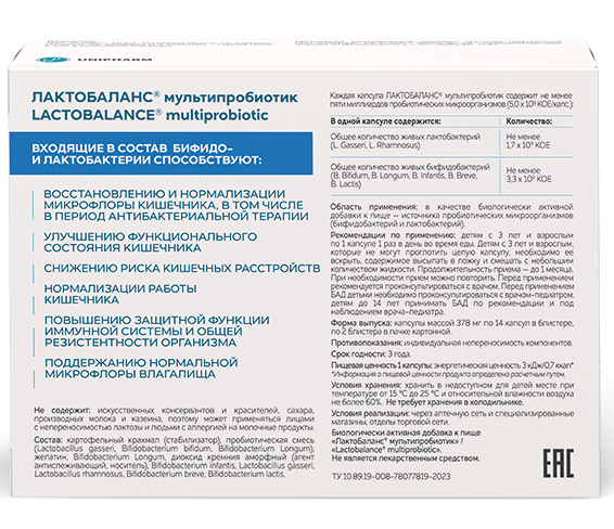 • 📒 Подробная инструкция по применению Лактобаланс мультипробиотик / Lactobalance multiprobiotic капсулы массой 378 мг 28 шт