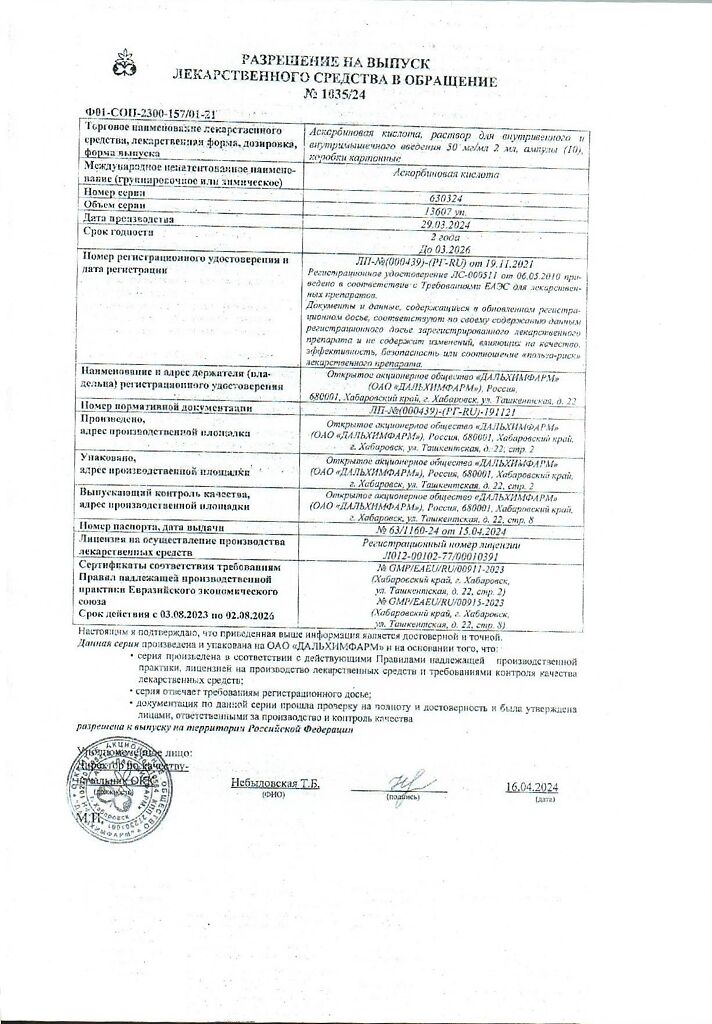 Документы Аскорбиновая кислота раствор для в/в и в/м введ 50 мг/мл 2 мл ампулы 10 шт