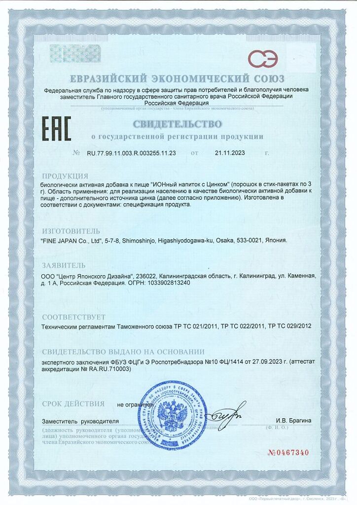 Документы Fine Напиток ION drink с Цинком порошок в стик-пакетах по 3,2 г 22 шт