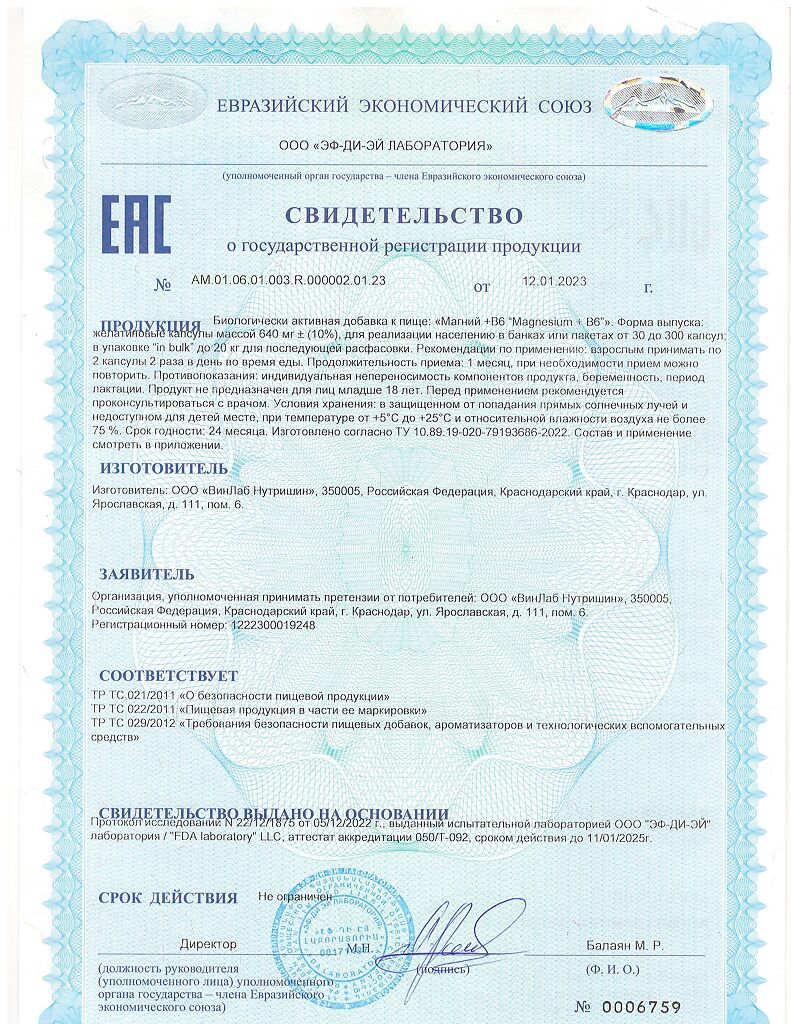 Документы 1WIN Магний+B6 / Magnesium+B6 капсулы массой 640 мг 240 шт