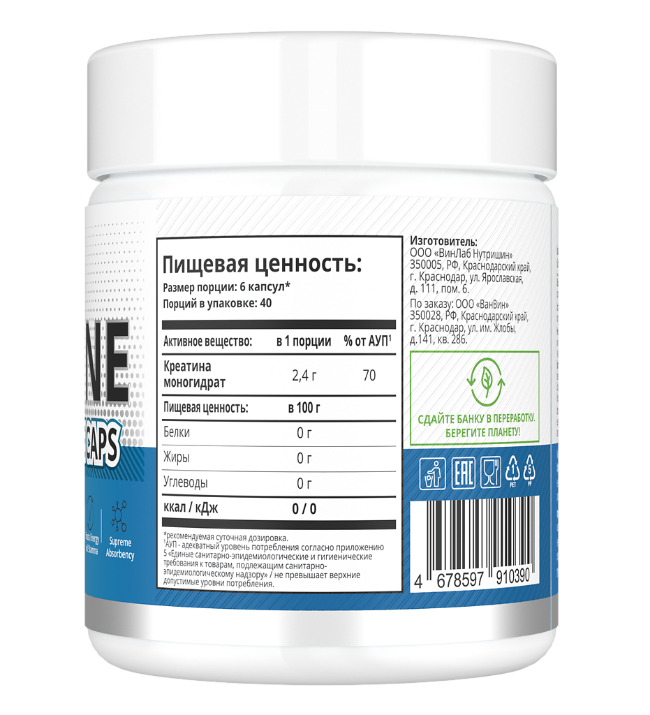 • 🏪 Купить 1WIN Креатина моногидрат / Creatinе monohydrate капсулы массой 510 мг 240 шт можно на сайте и в наших аптеках в Челябинске