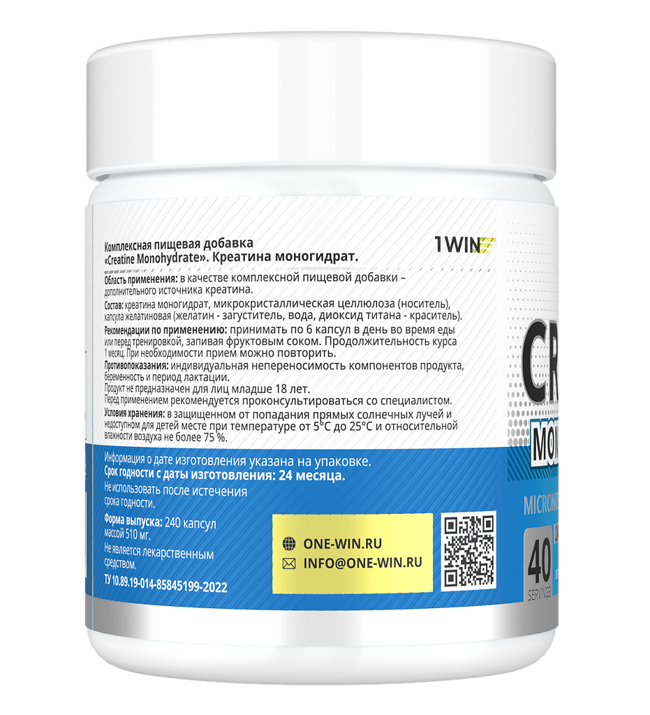 1WIN Креатина моногидрат / Creatinе monohydrate капсулы массой 510 мг 240 шт