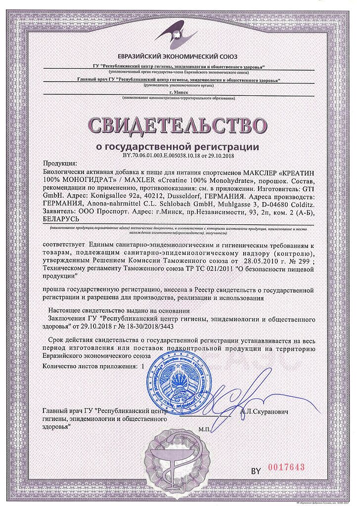 Документы Макслер Креатин 100% Моногидрат/ Maxler Creatine 100% Monohydrate порошок по 300 г 1 шт