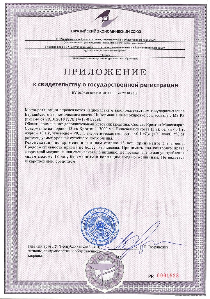 Рекомендуется в качестве биологически активной добавки к пище, дополнительный источник креатина.