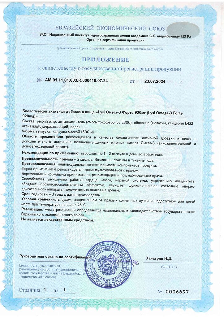 Документы Lysi Омега-3 Форте 920 мг / Omega-3 Forte 920 mg капсулы массой 1500 мг 50 шт