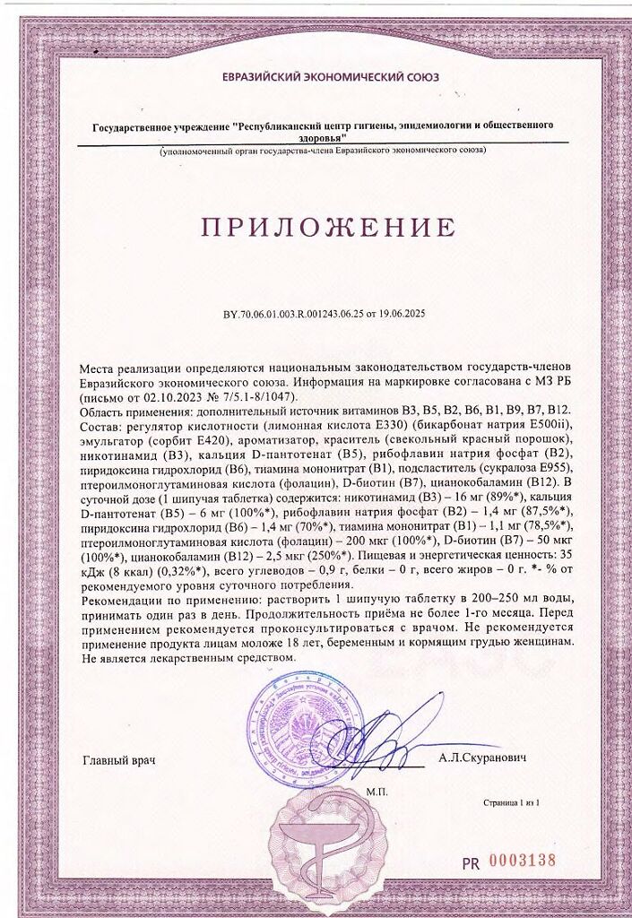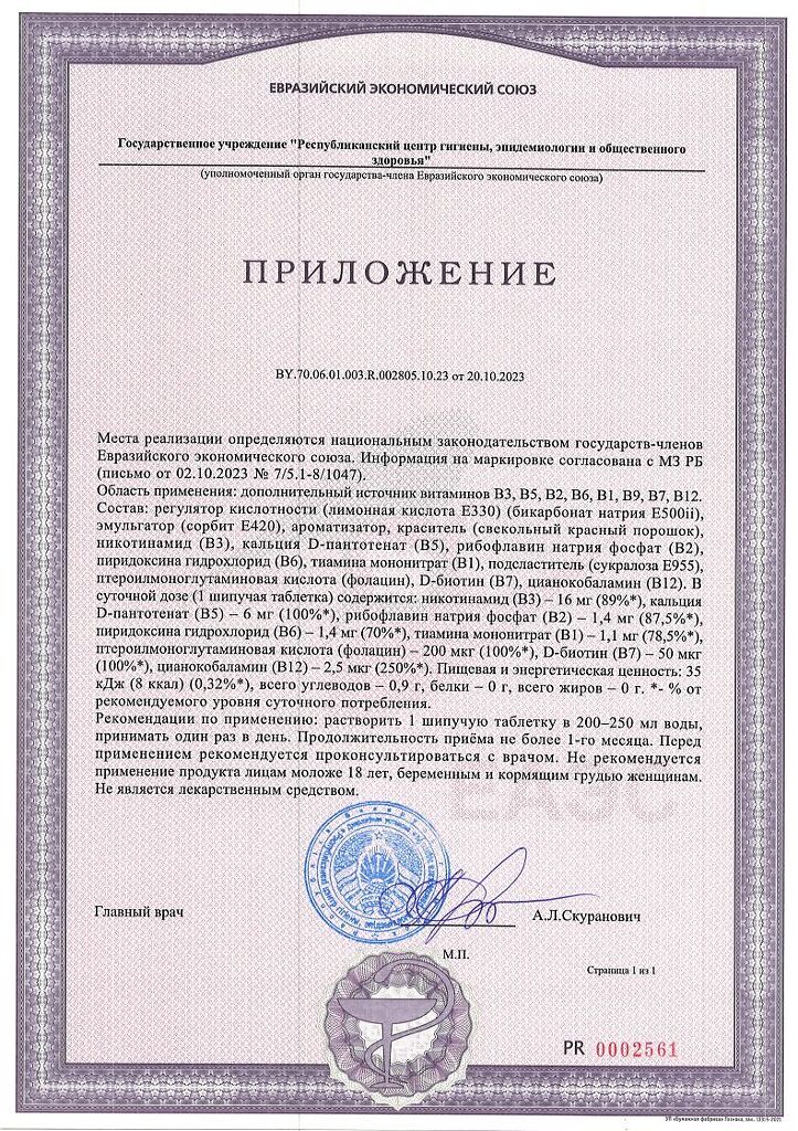 | Витамин B5 | 150 мг | 2500 | 6 мг | 100 |