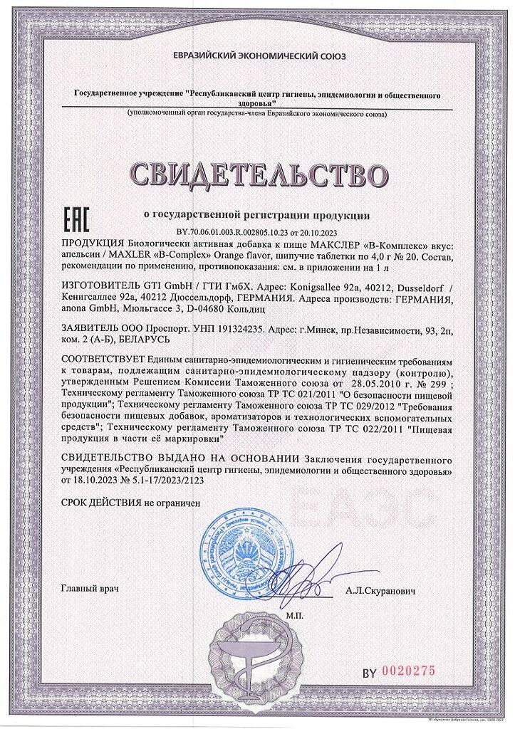 | Витамин B3 | 400 мг | 2500 | 16 мг | 100 |