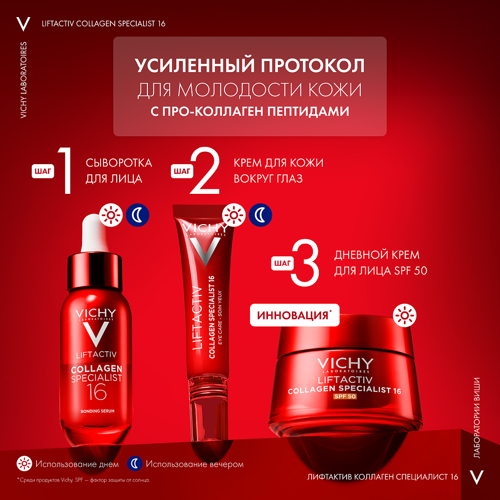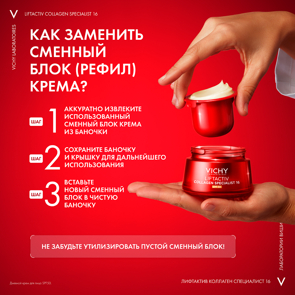 • 📒 Подробная инструкция по применению Vichy Liftactiv Collagen Specialist 16 Крем дневной для лица SPF50 Refill 50 мл 1 шт